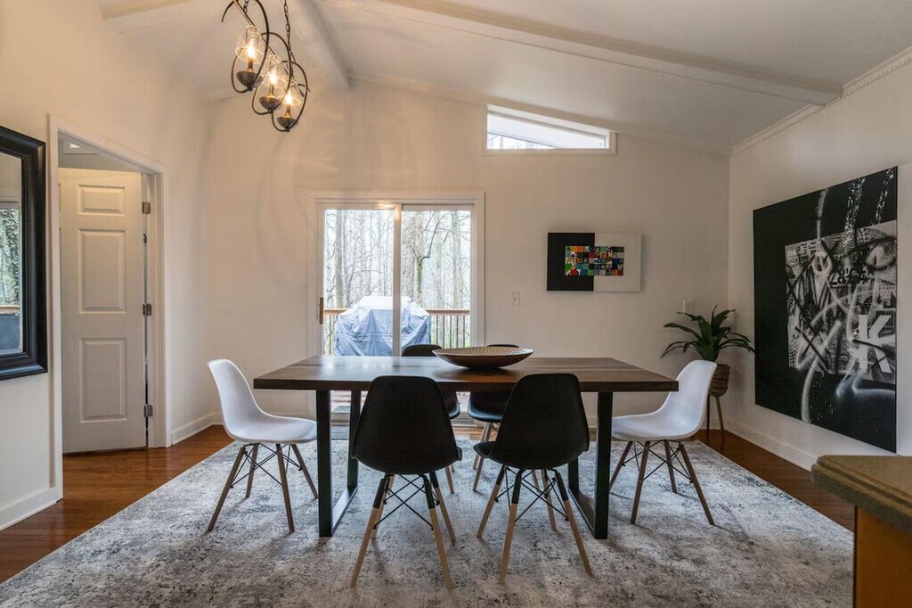 Unwind in comfort at this newly updated single-story 3-bedroom, 2-bath home-ideally located just minutes from downtown Woodstock's best dining, shopping, and entertainment. Whether you're staying for a few nights or a few months, this home is fully move-in ready for your convenience. Inside the Home: Master suite with king bed, Smart TV, and private bathroom featuring a walk-in shower 2 Queen bedrooms, each with Smart TVs & fresh linens Cozy family room with Smart TV mounted over the fireplace Fully equipped kitchen with stainless steel appliances & cooking essentials Dining area seats 4 guests Laundry closet with washer & dryer High-speed WiFi throughout Outdoor Features: Back deck seating - perfect for your morning coffee or evening wind-down Driveway parking for 1-2 vehicles (garage not accessible) No parking on grass, please Backyard not fenced Nearby Attractions: Sequoyah Park Disc Golf Course Ansley Golf Club at Settindown Creek Atlanta National Golf Club White Columns Country Club The Golf Club at Bradshaw Farm Extras You'll Love: Welcome basket with snacks & Keurig K-Cups All utilities, internet, lawn care & pest control included Pet-friendly (fees apply) Family-friendly and great for small groups 3D Matterport virtual tour available upon request Booking Discounts: 10% off stays 7+ nights 15% off stays 30+ nights 15% off last-minute bookings (within 7 days of check-in!) Perfect For: Traveling professionals or couples Families relocating or in transition Golfers, remote workers & long-term stays Good to Know: Non-smoking property No events allowed Children welcome Garage not accessible Security Requirements: TRUVI identity verification - link sent after booking Photo of payment card (must match reservation name) required before check-in Send to +1 or (Sensitive info may be hidden - full card number not needed) Relax, recharge, and enjoy all Woodstock has to offer - from golf to great food - in this cozy and convenient retreat. Ask for the 3D virtual tour and book your stay today!