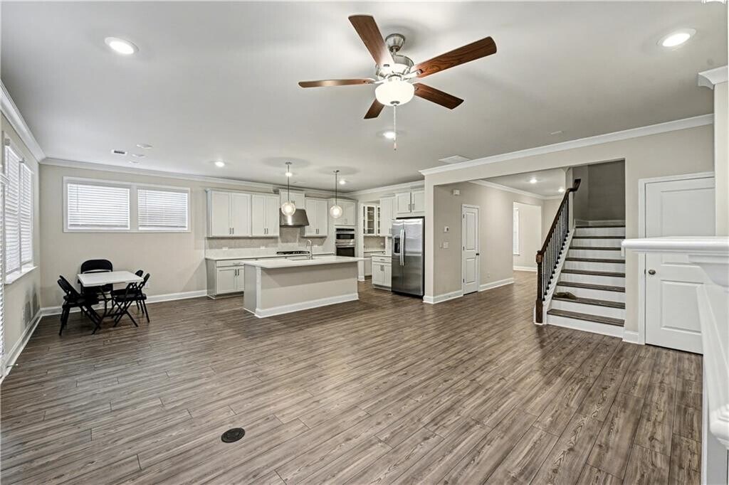 Be the first to live in this beautiful 5-bedroom, 4-bathroom single-family home located in the brand-new Bailey Fence subdivision of Dacula! This freshly built residence offers a bright, open-concept main floor with a seamless flow between the kitchen, dining, and living spaces — perfect for entertaining. The kitchen is outfitted with white cabinetry, a large island, walk-in pantry, and modern stainless steel appliances including a gas range, microwave, dishwasher, and refrigerator. A spacious guest suite with a full bath is also conveniently located on the main floor. Upstairs, the luxurious primary suite features a large walk-in closet and an elegant bath with double vanities and a separate tiled tub and shower. Three additional bedrooms, two full baths, and a laundry room equipped with a washer, dryer, and oversized sink complete the upper level. Enjoy easy outdoor living with a covered patio, private driveway, and ample parking. Community amenities include sidewalks, a swimming pool, street lights, and proximity to top-rated schools and shopping. With no carpet — only beautiful LVP throughout — this home offers style, convenience, and comfort in one of Gwinnett’s most sought-after locations