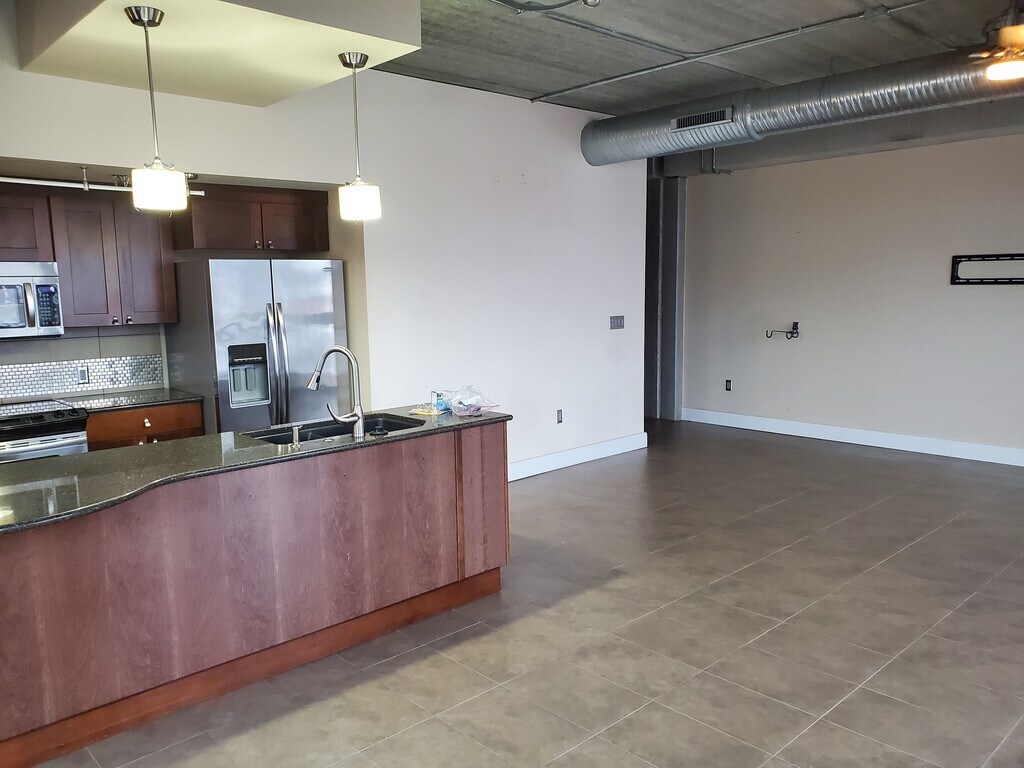 East Village loft living at its finest. All your favorite shops and restaurants literally right outside your door. Fully furnished with Queen-sized bed, furniture, grill, and big-screen TVs. It boasts an impressive layout with large living areas and 1250 square feet of living space. 12-foot ceilings, big windows, hardwood flooring, and views of the downtown Des Moines skyline. The kitchen features a breakfast bar, modern cabinets, polished concrete countertops, stainless steel appliances and in-unit laundry. Secured building with private entrance and elevator. The fitness center is located on the second floor. Year-long lease minimum. No smoking allowed. Small pets allowed with prior approval and additional deposit.