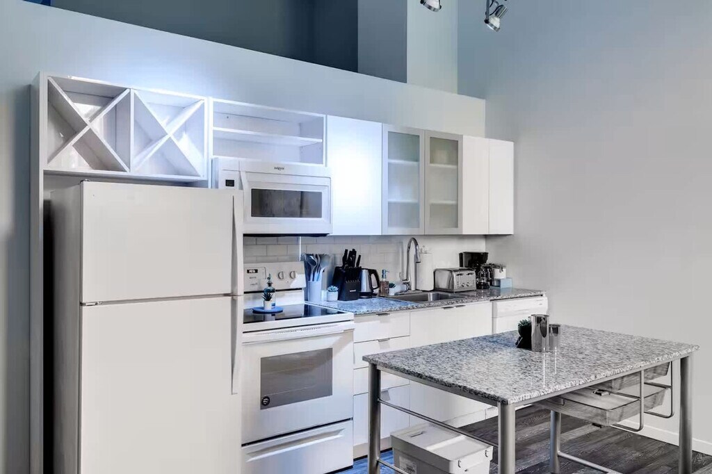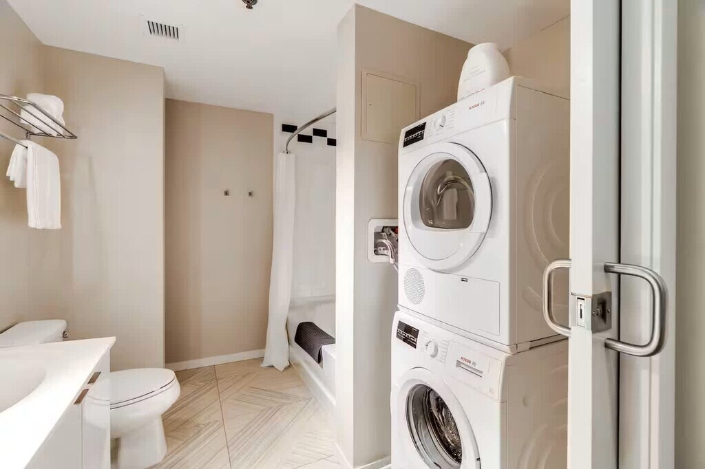Feel at home in this apartment, once a grand historic hotel, now reimagined into sleek modern apartments. The rooftop lounge offers breathtaking city and river views. This contemporary luxury apartment is designed for comfort and style. The living room features modern decor, cozy seating, and a 55" Roku Smart TV. The fully equipped kitchen includes an oven, stove, fridge, dishwasher, and coffee maker, with dining for two. An in-unit washer and dryer are available for added convenience. The sparkling clean full bath is stocked with towels and toiletries. During Bengals home games, parking rates may increase significantly and can go up to $50. With a walk score of 96, this centrally located apartment offers unmatched convenience. Transit stops are just steps away, and you’re surrounded by a variety of restaurants, bars, and entertainment. Paycor Stadium and Great American Ball Park are less than a mile away. Beyond sports, you’ll find theaters, music venues, museums, and parks—all within walking distance. Pets are not allowed, and evidence of unregistered pets will result in a $500 fine. Smoking on the property will result in a $1000 fine. There is a $1000 surcharge charged to groups that are deceitful about the use of the apartment. Guests partying will be asked to vacate the property immediately without refund. A surcharge of $350 per undeclared guest per night will be applied for each unapproved guest. Under no circumstances is the security camera to be removed or disabled in any way that is found on the outer door frame of the unit. Any cameras removed or disabled will be considered a violation of the booking and a fine of $500 is applicable. A $50 per hour penalty is applied if guests fail to check out by 10:30 am. Check-in is flexible after 4 pm and check-out is at 10 am. [SI]