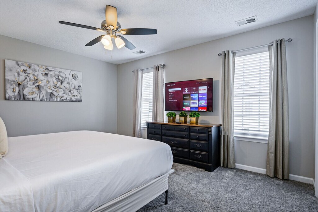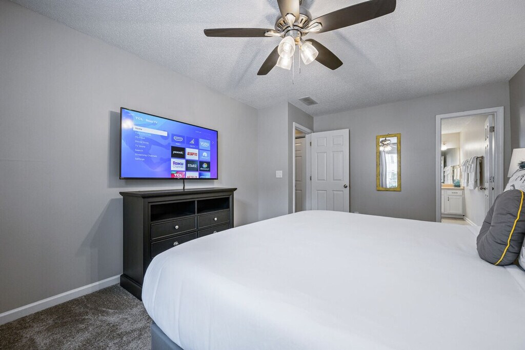 Perfect for families, traveling professionals, or insurance-displaced guests, this 4-bedroom, 2-bathroom split-level home offers a quiet and comfortable stay just minutes from Cartersville Medical Center, Bartow Marketplace, and LakePoint Sports Complex. Inside the Home: Main-level master suite with king bed + private ensuite bath Upstairs bedrooms: - 1 King bedroom - 1 Queen bedroom - 1 Twin bedroom (great for kids or solo guests) Smart TVs in all bedrooms Blackout curtains, hotel-quality bed & bath linens, and comfy furnishings Fully stocked kitchen with cookware, kitchenware & cooking basics Full-size washer & dryer in laundry closet High-speed WiFi included Welcome tray with snacks and Keurig K-Cups Outdoor & Parking: Located in a quiet residential neighborhood Driveway parking available Backyard available (let us know if you'd like us to highlight usage specifics!) Booking Discounts: 5% off stays 7+ nights 10% off stays 30+ nights All-Inclusive Stay: Utilities, WiFi, lawn care & pest control - no hidden fees Fully move-in ready 3D Matterport tour available upon request Perfect For: Families in transition or relocation Traveling workers & professionals Long-term corporate or insurance stays Good to Know: Non-smoking property No events allowed Children & pets welcome (pet fees apply) Security Requirements: TRUVI identity verification required (link sent after booking) Photo of payment card (name must match reservation) required before check-in Send to +1 or (Sensitive info may be hidden - full card number not needed) Enjoy a clean, quiet, and fully stocked home base in the heart of Cartersville. Ask for the 3D virtual tour and lock in your dates today!