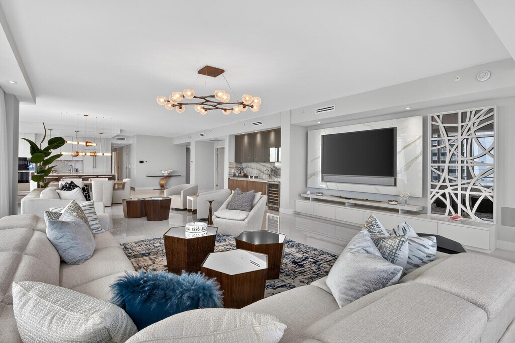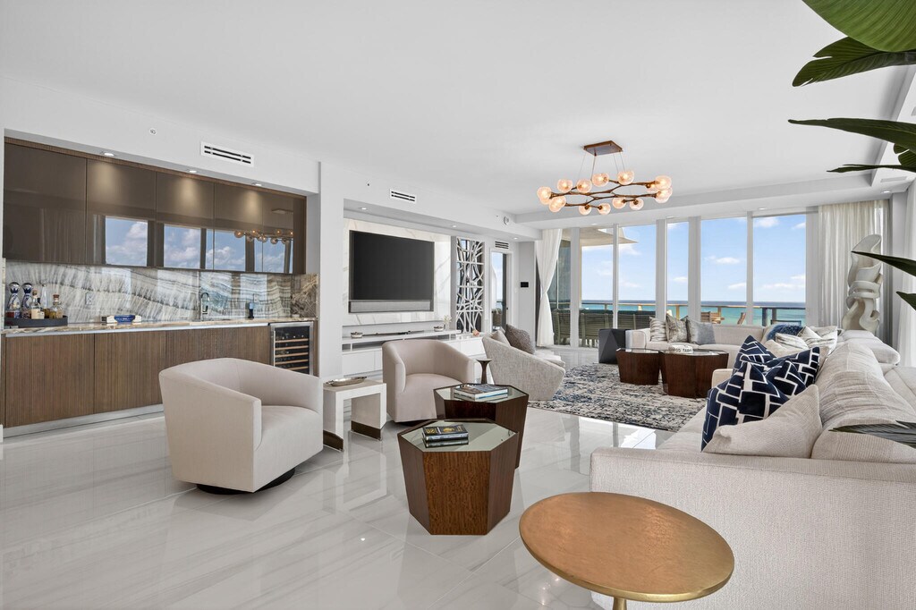20 floors above the coastline,this one-of-a-kind direct oceanfront penthouse offers over 6,000 sq ft of total space and 3,400 sq ft under air,with breathtaking,unobstructed Atlantic views. Thoughtfully designed with custom finishes and top-tier furnishings,it blends sophistication and comfort for elevated coastal living. The 3-bedroom plus den layout features expansive living areas,panoramic ocean views,and a fully integrated smart home system. A standout feature is the private rooftop oasis,accessed via an in-residence lift,complete with dining area,grill,firepit,lounge seating,and hot tub,perfect for sunset entertaining. Ideally located near Palm Beach Island,Jupiter and PGA Boulevard. MLS ID B26017179
