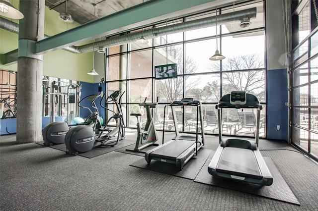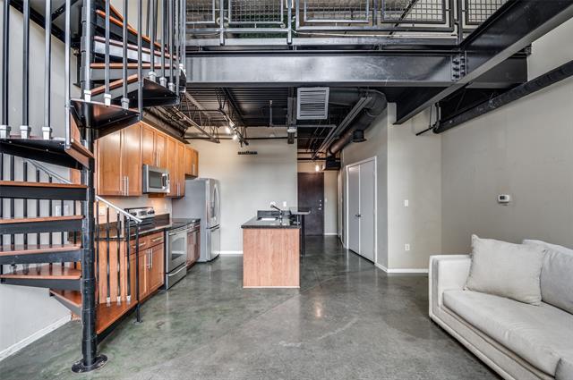 Sought after Modern Loft in heart of Uptowns State Thomas District. Granite counters, Stainless Steel Appliances, two story high Modern windows. Stained concrete floors, full size Washer & Dryer 2nd level bedroom overlooking family room. Building amenities include resistance pool, spa & fitness exercise facility with updated equipment & TV, Rooftop terrace overlooking downtown Dallas. Newly renovated Griggs Dog park. Designated parking adjacent to elevator and trash shoot across hallway