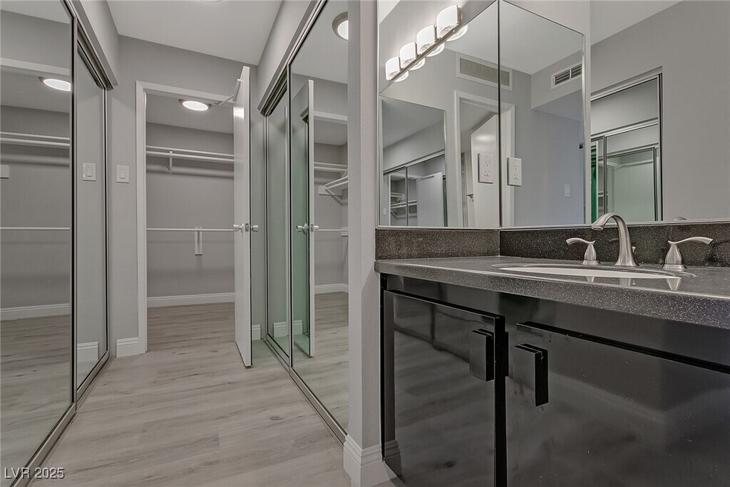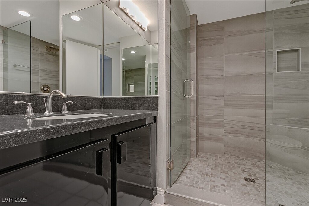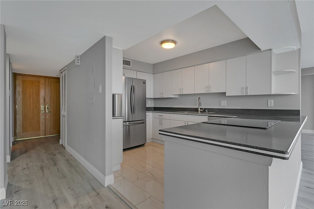 Experience high-rise living on the 11th floor of Regency Towers in the Las Vegas Country Club. This remodeled 3-bedroom residence offers sweeping views of the golf course, Strip, downtown, and surrounding mountains through floor-to-ceiling windows and a spacious wrap-around balcony accessible from every room. The kitchen is equipped with stainless steel appliances, granite countertops, a breakfast bar, and ample cabinetry. The primary suite features a custom walk-in closet and a luxurious bathroom with a tiled standing shower and an additional vanity seating area. The one of the guest bedrooms includes a built-in desk and cabinetry, while the two guest rooms are connected by a Jack and Jill bathroom. Residents enjoy top-tier amenities including 24-hour concierge, valet, security, pool, spa, fitness center, tennis courts, BBQ area, and both underground assigned and guest parking. - Includes cable, WiFi, trash, water, sewage, gym, and pool/sauna access. CHECK FOR APPLICATION STATUS: Allow one of our BCRG Rental Specialists to assist you in finding your next home for FREE! Black and Cherry Real Estate Group