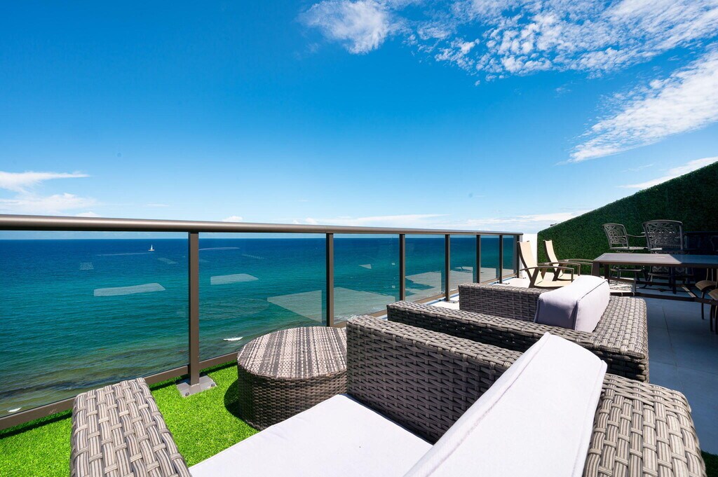 Discover the pinnacle of oceanfront living in this exceptionally rare, never before rented, beautifully renovated 3-bedroom, 4-bath, TWO STORY PENTHOUSE featuring a PRIVATE ELEVATOR INSIDE THE CONDO directly on the sand, available for annual or seasonal lease (min 4 mo). Comprised of 3,288 square feet under air with 4,000 total square feet, this home in the sky offers unobstructed ocean and intracoastal views throughout. Thoughtfully designed with modern elegance and comfort, this stunning residence features a PRIVATE ELEVATOR, offering seamless access to both levels. Bask in the ocean grandeur on any of your 4 private balconies - one of them a large unobstructed oceanfront terrace which can accommodate 30+ guests, outfitted with a bar, dining table, and outdoor TV overlooking the ocean.