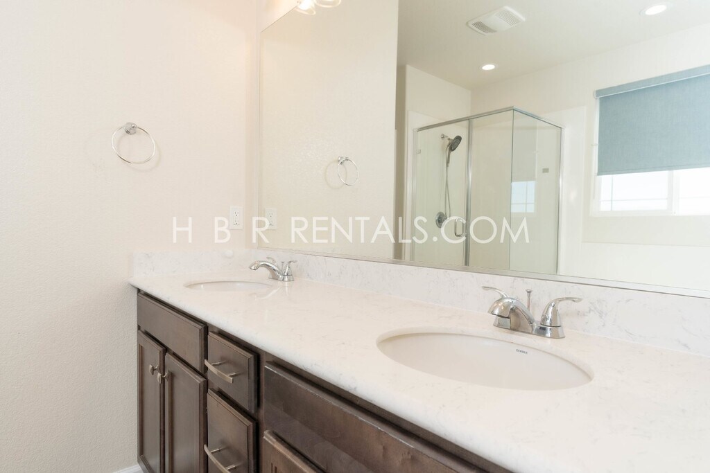 LOOK at this beauty! Modern 4-Bed, 3-Bath Home at 312 E Liverno Ave – Mountain House Description Rent: $3,100 Pets: No Pets Deposit: $3,100 Yard Care: Maintained by resident Utilities: Maintained by resident Built: 2018 For the fastest service, please visit find the property, click “SCHEDULE A SHOWING,” and request your preferred viewing time. Property Highlights • Spacious 4 bedrooms and 3 full bathrooms • One full bedroom and bathroom on the first floor • Open-concept living and dining areas • Modern kitchen with ample cabinetry and counter space • Laundry room conveniently located upstairs • Attached garage • Solar for lower monthly energy bills This home offers a thoughtful layout with plenty of space for comfortable living or hosting guests. Located in the desirable Mountain House community, you’ll enjoy a well-maintained neighborhood with easy access to parks, schools, and commuter routes. This property is being offered for rent by HBR Rentals and will be fully managed by the property management company following resident acceptance and placement. APPLICATION REQUIREMENTS • Application required from each applicant 18+ years old. • Excellent credit is required of each applicant. • Service animals and ESAs to be screened at • Meet company qualifying requirements. • Able to take possession of the property within 21 days of the availability date. • Must have excellent credit, employment, and rental history. • Favorable responses from references. • Evidence of financial ability to pay rent and other obligations. • Proof of income showing a rent-to-income ratio of 3:1 (pay stubs, W-2s, tax returns, bank statements, LES, etc.). • Fully completed application from each applicant. Missing or incorrect information may delay or disqualify the application. FEES AND INITIAL PAYMENTS • Application fee: $60/adult • Lease admin fee: $50 due at signing • First month’s rent: due at signing • Security deposit: due at signing • Available now! • Pets are not permitted at this property. • We operate on a first-come, first-served basis, prioritizing the first fully qualified applicant. How to Apply: All HBR Rentals residents are enrolled in the Premier Resident Package (PRP) for $50.95/month, which includes renters insurance, HVAC air filter delivery (for applicable properties), credit building, $1M identity protection, move-in concierge services, resident rewards program, and additional details provided upon application. All verifiable sources of income will be considered. Pursuant to Cal. Govt. Code §12955(o), for applicants with rental vouchers or subsidies, the income threshold will be calculated based on the rent paid by the resident (not the full rent amount). DRE 0188547Dual Vanities Lvt New Interior Paint Recessed Lights Solar Tub/Shower Combo Two Story