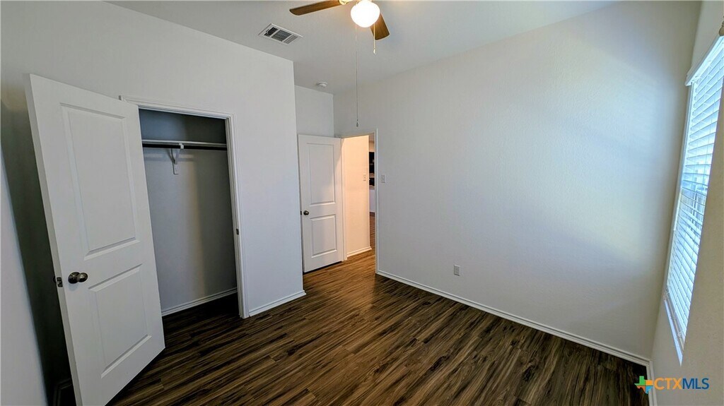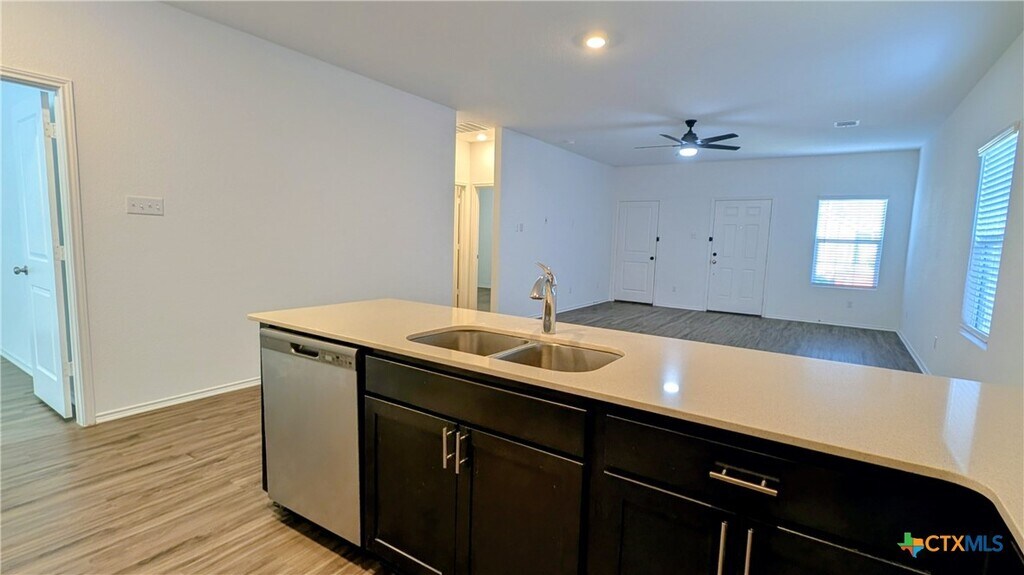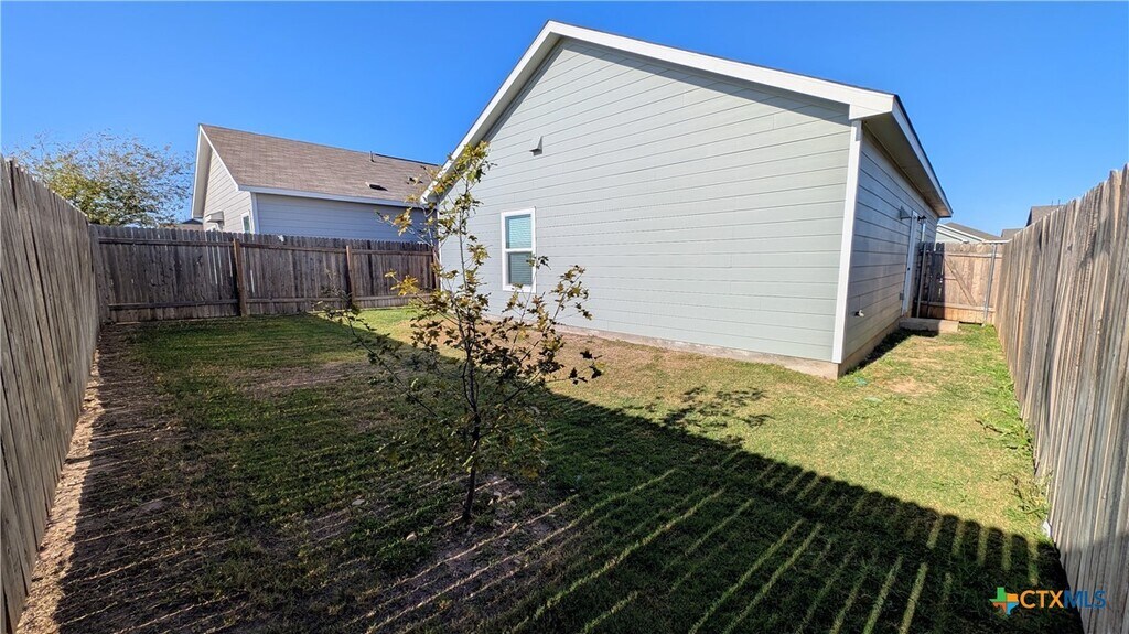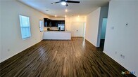 This 3 bedroom,2 bath home offers comfortable living perfectly situated between San Marcos and Kyle,TX—ideal for anyone needing quick access to both cities. This home features an open-concept layout with spacious living areas,updated flooring,and plenty of natural light throughout. The kitchen boasts dark cabinetry,stainless steel appliances,and a large breakfast bar overlooking the living room. A full-size washer and dryer are included for added convenience as well as a built in water softener. The primary suite offers a generous walk-in closet. Enjoy a private fenced yard,water sprinkler system,landscaping. Owner covers the Wastewater bill for utilities,each month as well. To cool off in the summer each room is equipped with a ceiling fan,and blinds. With easy access to I-35,shopping,dining,and local parks,this home combines convenience with everyday comfort—ready for move-in!
