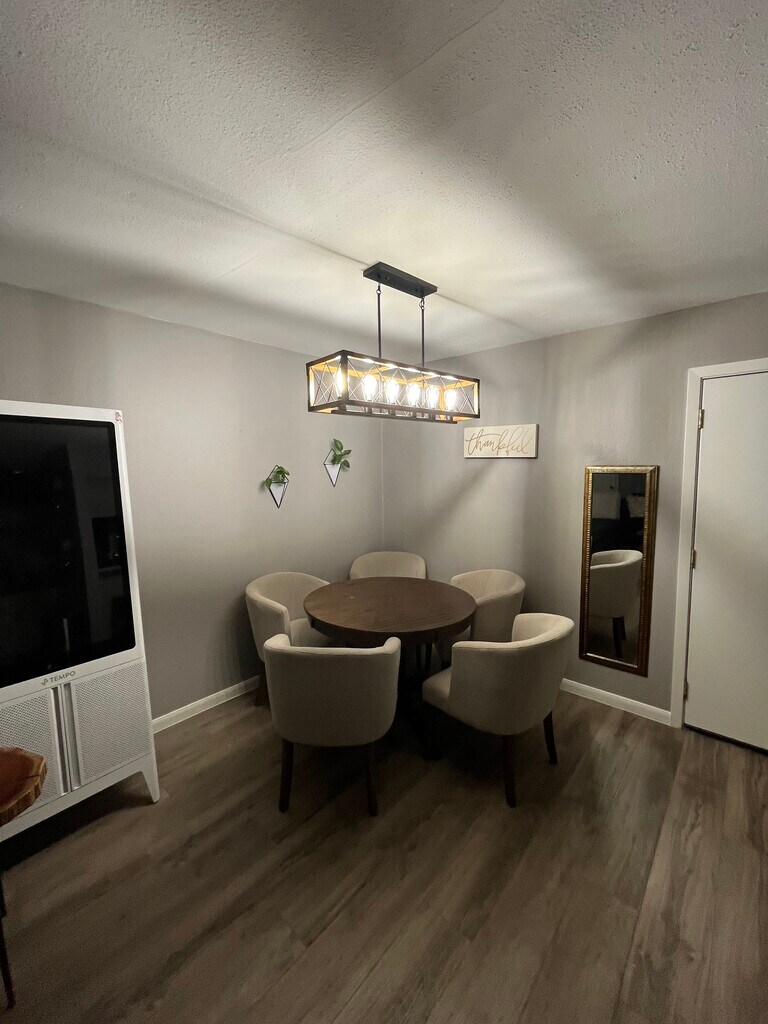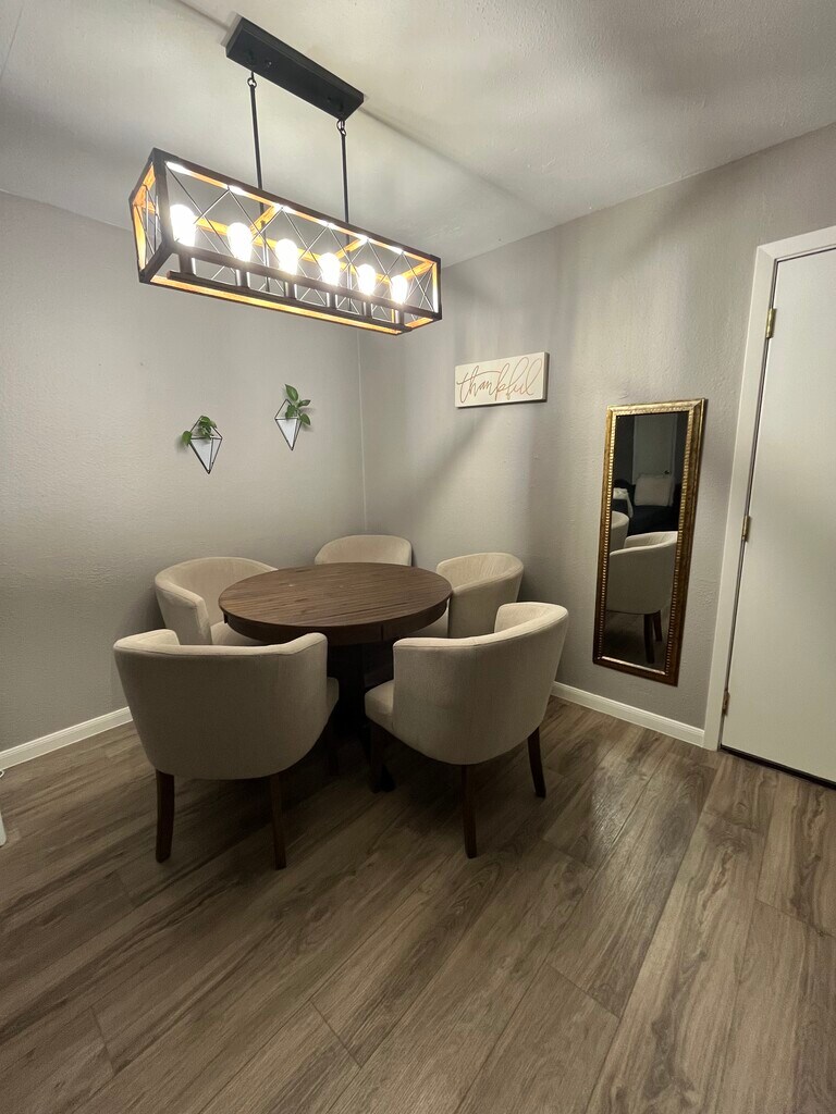 Modern 1 Bed Condo with Updated Kitchen, Open Layout & Stylish Finishes Available Now | Move-In Ready Step into this beautifully updated condo featuring a bright, open layout and modern finishes throughout. With wood-style flooring, neutral tones, and upgraded lighting, this home offers a clean, contemporary feel that’s easy to make your own. Home Features: • Open-concept living and dining area • Updated kitchen with granite countertops & white cabinetry • Stainless steel appliances • Modern tile backsplash • Breakfast bar with additional seating • Dedicated dining space with statement lighting • Spacious living room perfect for relaxing or entertaining • Stylish finishes and neutral color palette throughout