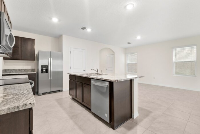 ***Move in with LITTLE TO NO SECURITY DEPOSIT USING OBLIGO!***This all concrete block constructed, two-story plan has a large open-concept downstairs which includes a well-appointed kitchen, living and dining area which include extended tile, and a patio, perfect for enjoying the outdoor Florida breeze. Upstairs, the oversized Bedroom 1 can easily fit a king size bed and includes a large walk-in closet as well as Bathroom 1 bathroom with double vanity. Three other bedrooms share a second upstairs bathroom while the loft provides an extra area for work or play. This home comes with stainless steel refrigerator, built-in dishwasher, electric range, microwave, granite countertops, as well as washer and dryer. Epperson is the first community in the U.S. to include one of Metro Places Crystal Lagoons, a clear, 7-acre man-made swimming pool. Homeowners can relax on white-sand beaches, go for a swim, or take a ride down the lagoon slide. Kayaking and paddle boarding are also great options. And if you're up for a bit of a challenge, try your skill at a Wibit session, the on-the-water obstacle course. The lagoon also features a swim-up bar and a shaded green space where you can play lawn games, listen to live music, or watch your favorite sports team on the big screen. Family-friendly entertainment is always available here at Epperson. This property is professionally managed by Spartan Property Management. All applications to be submitted through Call or Text Leasing Agent Sarah Sagrati at . ALL APPLICATION FEES ARE NONREFUNDABLE. WE WILL ACCEPT THE APPLICATION THAT BEST MEETS THE REQUIREMENTS. Disclaimer: The photos of the home were taken when the home was brand new. This home has been in our inventory and the paint may have some minor variations due to touchups and carpet may have some minor wear. Rental applications may be subject to breed restrictions in certain homes and communities Spartan Property Management is proud to offer deposit-free living to qualified renters through Obligo! We understand that moving costs can add up, so we want to extend financial flexibility to our residents. When you move in with us, you can skip paying a security deposit and keep the cash for activities you care about. All Spartan Property Management residents are enrolled in the Resident Benefits Package (RBP) for $49.95/month which includes liability insurance, credit building to help boost the resident’s credit score with timely rent payments, up to $1M Identity Theft Protection, HVAC air filter delivery (for applicable properties), move-in concierge service making utility connection and home service setup a breeze during your move-in, our best-in-class resident rewards program, and much more! More details upon application. APPLICATION FEES: $100 PER PERSON 18+ (Spartan requires all primary applicants to be at least 25 years of age.) ADMIN FEE: $350 PEST CONTROL/ PET RENT MAY VARY, CONTACT LEASING AGENT STEAM CLEAN(If property has carpet): $275
