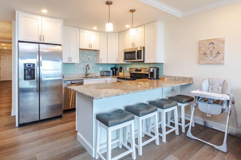 Available off-season at a discounted rate from November 2025 through May 2026. Enjoy this beautiful 5th floor, fully furnished and new 2-bedroom contemporary oceanfront condo at this centrally-located, high-rise condo complex right in the heart of Hampton Beach. Featuring incredible ocean views from the balcony and close proximity to shopping areas, local area hospitals, medical centers and business on the NH seacoast, Dover NH, northern Mass and southern Maine. Strictly no pets and no smoking allowed. Features unobstructed beach view on the balcony from the 5th floor (just beneath the penthouse level). Newest condo building in Hampton Beach, new construction built in 2020. *This premium property rents for over $4000/week in the summer months - Get a great deal off-season!* Large furnished kitchen, stylish living room, large ocean facing balcony deck, beautiful view of the ocean, near the area restaurants, gyms, bars, shopping and more. Fully furnished with everything you need. With elevator access to the 5th floor, the condo is available from late-October through late-May for an approx. 6 month off-season rental.