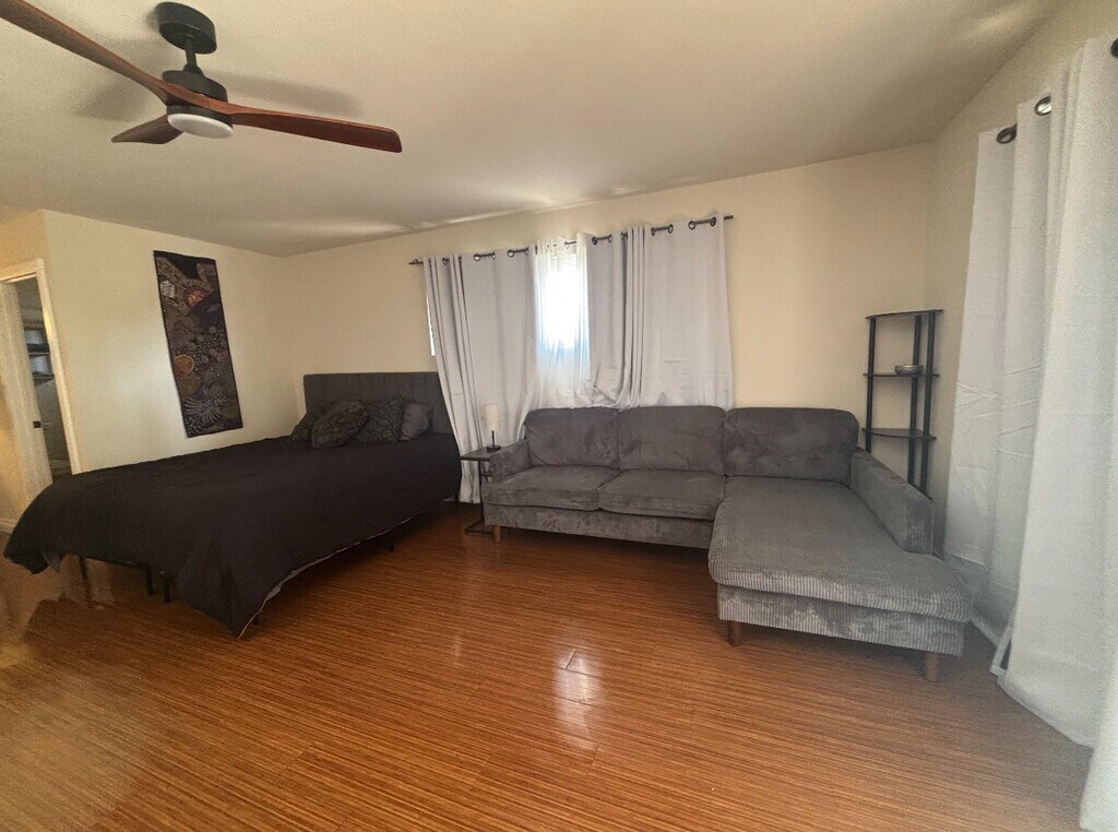 Property Id: 2306213 This is an organic exotic fruit tree farm. Lots of dirt, critters, trees, etc. we are located 8 miles from the beach with a direct bike path from Guajome lake only 2 miles away. This is a small living space but complete with AC, heat, cooking equipment, microwave, bathroom, dining, and memory foam bed. It’s not a forever home but comfortable for 2-3 months. We do have other larger units on the property. We have a pool and hot tub. Shared laundry and freezer space. One car only. One person only and limited guests. This is a family home. No partiers. Available now.