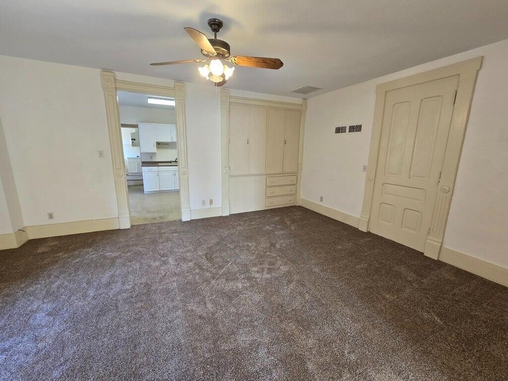 Studio Apartment in downtown Morris with luxury vinyl tile throughout. NOT a full kitchen, only a microwave and mini fridge. Bedroom has high ceilings with a ceiling fan, plenty of closet place. Washer and Dryer just outside your front door, second floor. Tenants pay all utilities expect garbage. Historical building in downtown Morris.