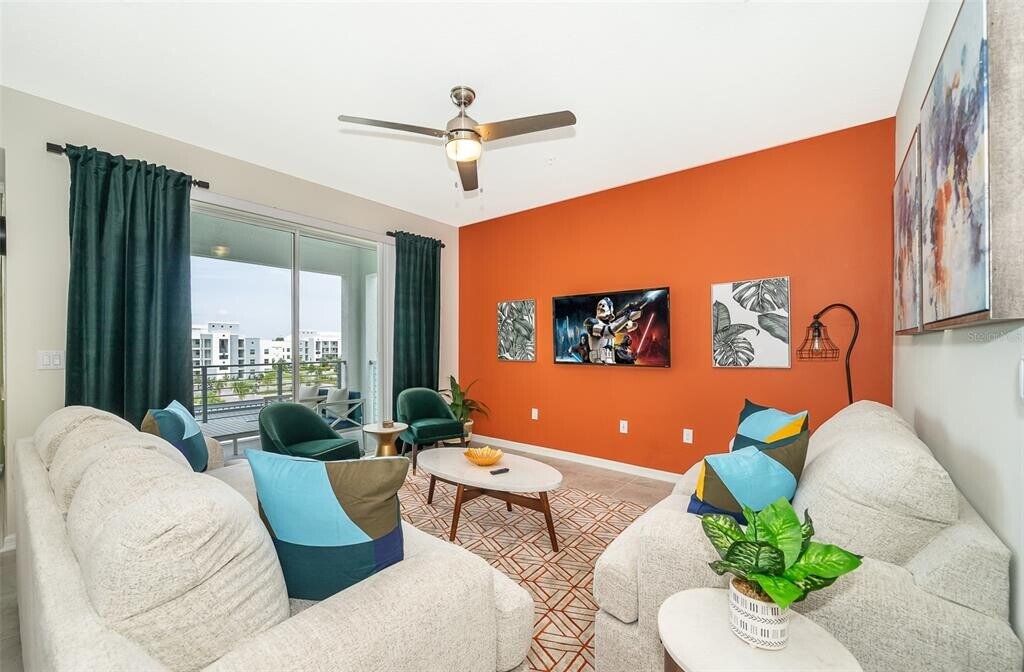 Life with style!! This fully furnished,two-bedroom gem in Storey Lake Resort is more than just a condo; waking up to the Florida sun in a beautifully decorated haven,steps away from a lazy river and minutes from Disney's magic. Tenants will flock to this prime location,boasting proximity to theme parks,outlet shopping,and everyday conveniences like supermarkets. Sleek quartz countertops in the open kitchen,stainless steel appliances gleaming,and 42" cabinets brimming with vacation essentials. Washer and dryer included. Blinds for privacy? all from the beautiful balcony in the top of the building,which shares beautiful views,Check. It's all here,ready to welcome new tenants!!. Think strategic investment? Think location,location,location! This condo is nestled in a highly desirable community,close to major attractions and essential amenities. Disney World is a mere 7-minute drive,Universal Studios is just 13 miles away,and SeaWorld beckons at 9.3 miles. Need groceries? Publix is a neighbor,and Super Walmart is open 24/7 for those late-night cravings. Dive into this investment and let the good times (and the bookings) roll! MLS# S5134374