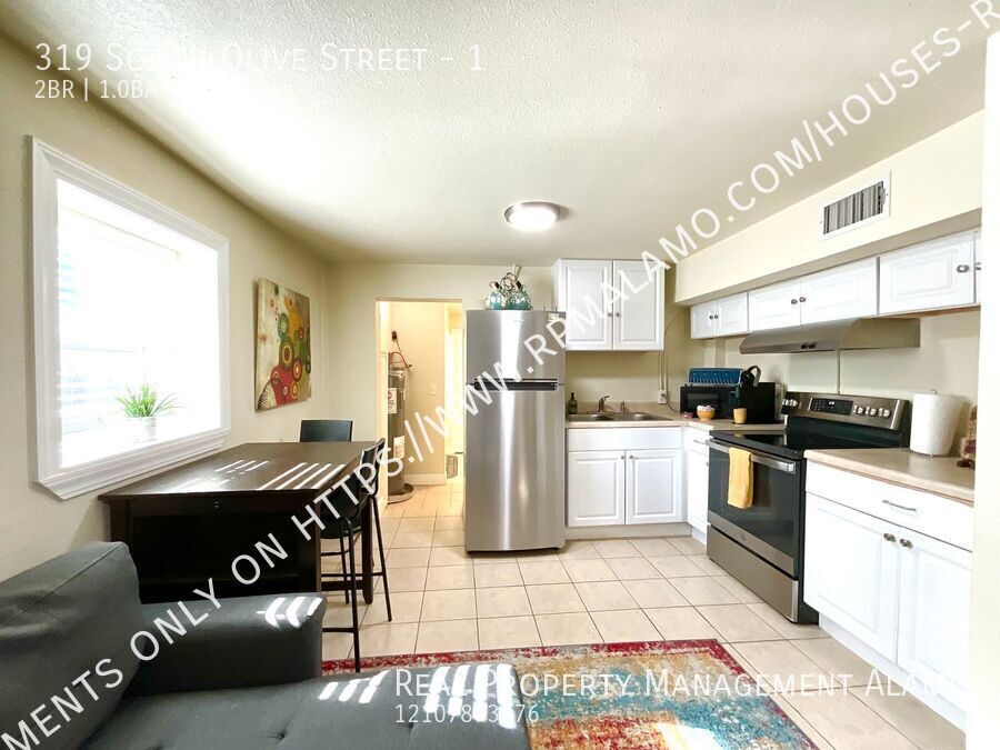 Nestled in the heart of San Antonio, 319 South Olive Street - Unit 2 offers a stylish and convenient living experience. This upstairs duplex unit features 2 bedrooms and 1 bathroom, providing a cozy and comfortable space for you. This unit has furnished and unfurnished options available to cater to your specific needs. The central air and heat system ensures you stay comfortable throughout the year, while the kitchen is equipped with stainless steel appliances, including a stove/oven, microwave, and refrigerator. The washer and dryer are conveniently located within the unit, making laundry a breeze. Situated near downtown San Antonio, this property puts you within easy reach of vibrant shopping, dining, and entertainment options. For more information, e-mail us at Thank you! We’re excited to walk you through this beautiful home! Contact us to schedule your private viewing. *Private Tours Only — No Self-Showings* Apply here: RPM Alamo is proud to offer deposit-free living to qualified renters through Obligo! We understand that moving costs can add up, so we want to extend financial flexibility to our residents. When you move in with us, you can skip paying a security deposit and keep the cash for activities you care about. Learn more about the benefits of deposit-free living with Obligo’s brochure or on their website. All Real Property Management Alamo residents are enrolled in the Resident Benefits Package of their choice Tier 1 $55 or Tier 2 $70 monthly which includes HVAC air filter delivery (for applicable properties), credit building to help boost your credit score with timely rent payments, $1M Identity Protection, utility concierge service making utility connection a breeze during your move-in, our best-in-class resident rewards program, and much more! More details upon application. ***The information contained in this advertisement is subject to change. The terms of any lease, should you execute a lease with RPM, are found solely in the Lease Agreement itself, along with any applicable addenda. Situations that may affect change include, but are not limited to an applicant's credit rating which may affect the required security deposit amount, and new information provided to us regarding a unit that we did not know at the time we placed this advertisement.*** $350 Pet Fee Non Refundable $50 Pet Rent 1 Bathroom 2 Bedrooms Central Air/Heat Duplex Fully Furnished Near Downtown Unfurnished Pricing Available. Upstairs Unit Washer/Dryer