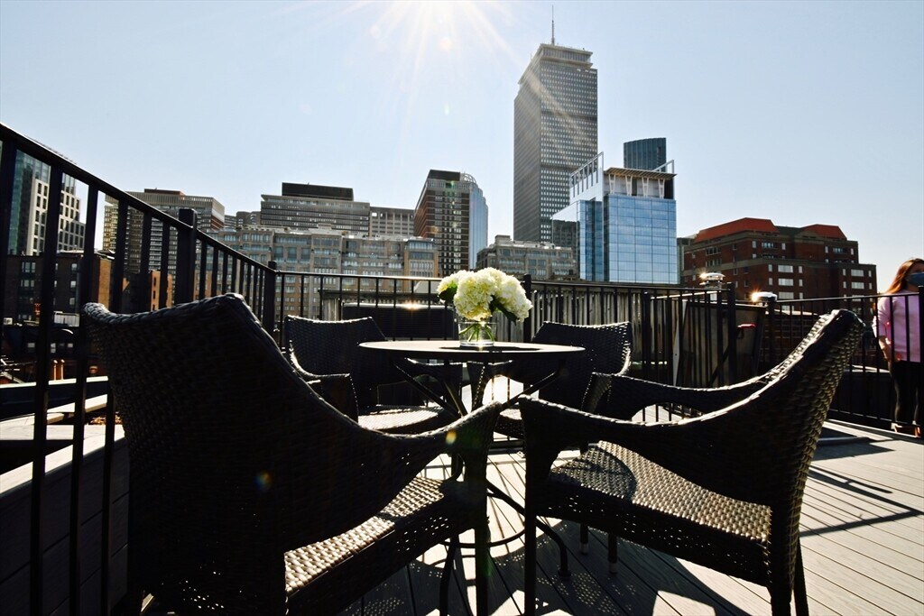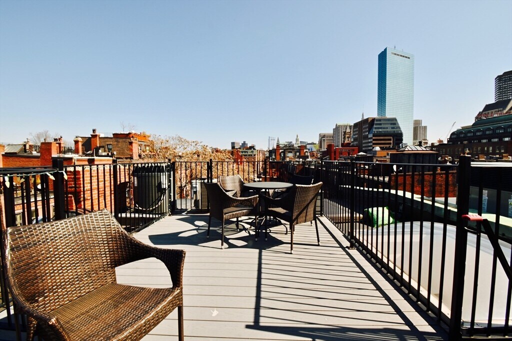 :: OPEN HOUSE SATURDAY MARCH 28TH from 12-2P :: With its own private roof deck,this one bedroom,one bathroom penthouse overlooks charming Fairfield Street and the rooftops of the surrounding brick row houses. A sun-filled space with an open floor plan featuring refinished hardwood floors throughout,and an updated kitchen with granite,stainless and large breakfast bar. The living room is flooded with natural light from large west facing windows and a skylight above. The oversized bedroom has plenty of room to work from home,ample closets,and in-unit WD.The roof deck,accessible from the unit,offers stunning views of the city skyline (and Fourth of July fireworks),electricity,water and built-in flower beds for your gardening hobbies. Perched on the corner of the iconic Newbury Street minutes away from the best dining and shopping in the city including four grocery stores: Star Market,Eataly,Delucca's & Trader Joe’s,The Shops at Prudential Center,Copley and The Charles River. MLS# 73490263