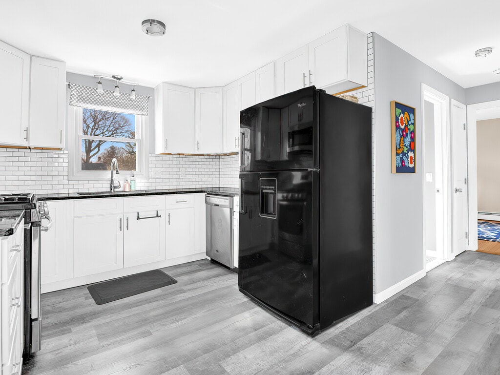 Available May 1st. Enjoy this fully furnished 3-bedroom,2-bath single-family home tucked away on a quiet dead-end street in Warwick’s desirable Conimicut/Longmeadow neighborhood,just two blocks from the beach. This bright and well-maintained single-family home offers a flexible layout with a first-floor bedroom and full bath,plus two spacious bedrooms and a second full bath upstairs. The updated kitchen features granite countertops,modern appliances,and a subway tile backsplash,opening easily to the main living spaces. Hardwood floors run throughout much of the home,complemented by great natural light from updated windows. Enjoy the convenience of in-unit laundry,air conditioning units provided for tenant use,and access to high-speed Verizon Fios internet. Outdoor features include a deck,fully fenced yard,and off-street parking for multiple vehicles,with additional storage available in the basement. Ideally located near marinas,restaurants,shopping,and major routes for an easy commute to Providence and beyond,with nearby schools including Robertson Elementary,Winman Middle School,and Toll Gate High School. One-year lease required. Tenant responsible for gas and electric. Pets negotiable. MLS ID 1409066