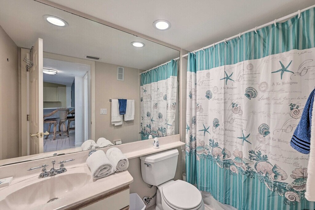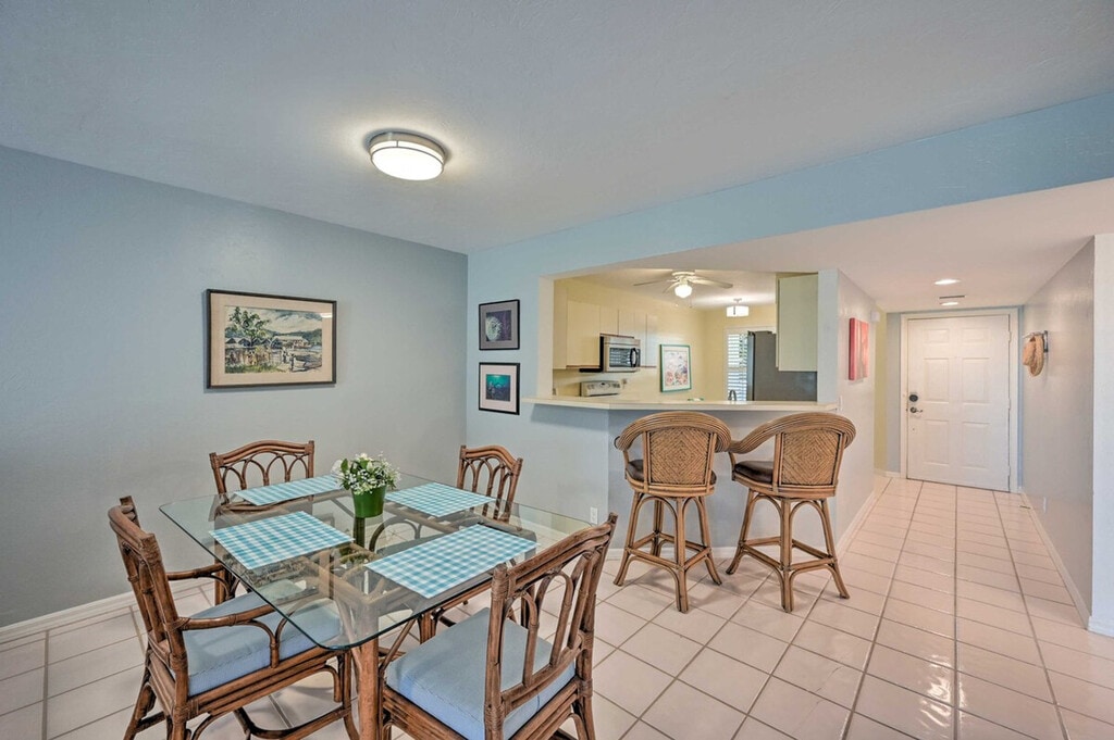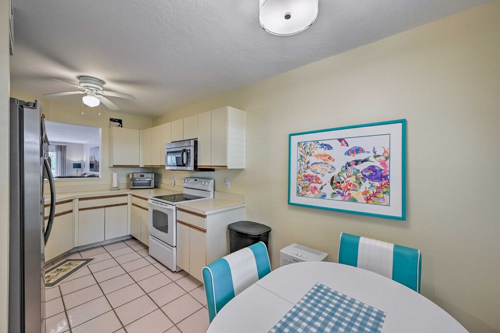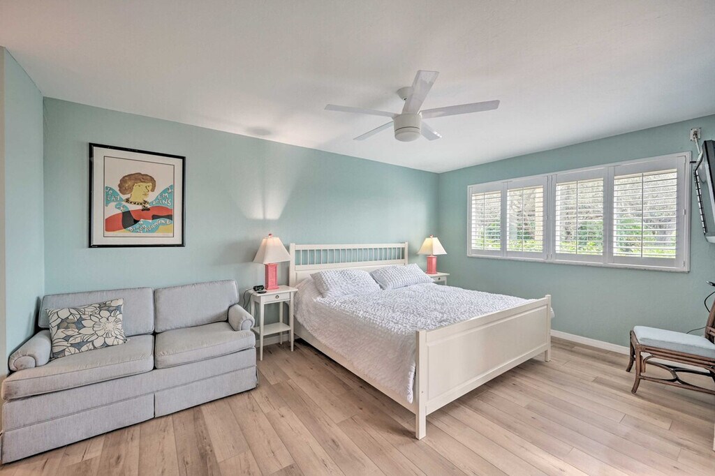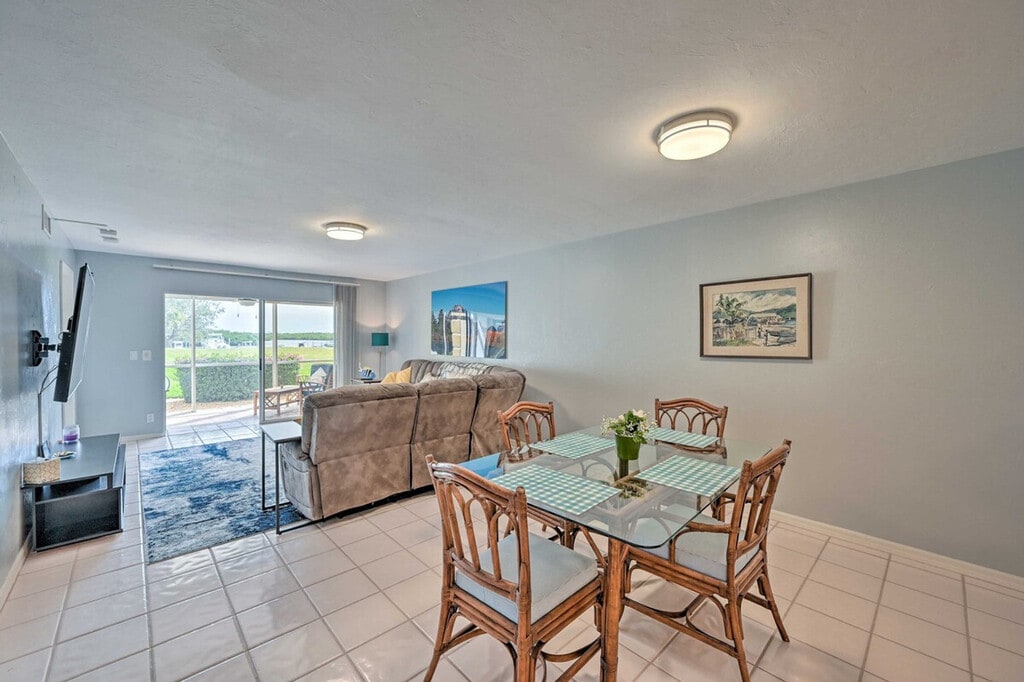 Pack your bags and feel at home in this delightful 2-bedroom, 2-bathroom condo, perfect for a small family or couple seeking sunshine in Florida. Situated on the first floor, this vacation rental offers step-free access and a seamless living experience. With community amenities like two pools and bocce ball courts, relaxation and fun are at your fingertips. Plus, the white sand beaches are just a short walk away, inviting you to enjoy the crashing waves and warm Gulf breezes. This condo features free Wi-Fi and in-unit laundry, ensuring convenience during your stay. The fully equipped kitchen includes a fridge with an ice maker, a drip coffee maker, a glass-top range, an air fryer, dishware and flatware, spices, and a cozy breakfast nook. The open-concept living area boasts smart TVs, a dining table, ceiling fans, and a screened-in patio with outdoor seating, perfect for unwinding after a day in the sun. Parking is available with a carport for one vehicle and a parking lot for passenger vehicles only. Additional fees and taxes may apply. Located just a stone's throw from the pristine white sand beaches, this condo offers easy access to the best of Florida's coastal attractions. Enjoy the nearby community pool, gas grilling area, ponds, and canal views, all contributing to a serene and enjoyable environment. This property maintains a no-smoking and no-pets policy, and prohibits events, parties, or large gatherings. Guests must be at least 25 years old to book, and a photo ID may be required upon check-in. The property requires a minimum stay of 30 nights. For your safety, an Amcrest doorbell device with an exterior security camera is installed, facing the front outdoor entry. The camera records video when motion is detected or when the doorbell button is pressed. A laptop computer is not included. [SI]