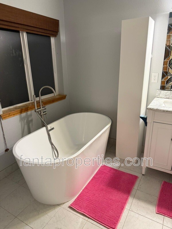This beautifully furnished 3-bedroom plus office home offers an impressive blend of style, comfort, and convenience—ideal for professionals, families, or anyone in need of a temporary stay. The open-concept great room seamlessly connects the living, kitchen, and dining areas, featuring a modern kitchen with stainless steel appliances and bamboo flooring. The luxurious primary bath has been remodeled to include a freestanding tub, frameless glass shower, and elegant tile work. The home also includes a fully fenced, low-maintenance backyard, with a play park and sports court just down the street. The dedicated office is equipped with a desk and dual monitors, making it ideal for remote work. Sleeping arrangements include a king bed in the primary bedroom, a queen in the second, and a full in the third. Please note that the garage is not available for use.