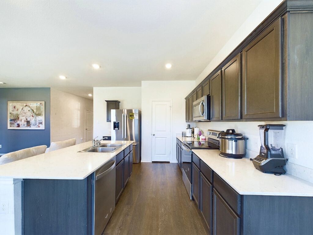 This newly built MOVE-IN-READY single-family home with 2,425 sq. ft. is in a HIGHLY RATED SCHOOL DISTRICT and offers modern design elements like CENTRALLY LOCATED SMART CONTROL WITH SMART WIFI DOOR LOCK, THERMOSTAT & GARAGE CONTROL. Home is also ENERGY-EFFICIENT. The LIVING ROOM has an open space concept which includes VINYL LUXURY flooring. The home has an OPEN-CONCEPT layout with lots of WINDOWS, spacious kitchen, barstool area and dining space that can be used to entertain multiple guests. The KITCHEN has stainless steel appliances, built-in shelves, ample storage and a stylish touch. THE home has a LARGE MASTER BEDROOM with a SPACIOUS WALK IN CLOSET. The GAME-MEDIA room is enhanced with a WiFi booster, ensuring uninterrupted connectivity. Nestled in the family-friendly neighborhood of Forney, TX, this property has a huge backyard, deep covered patio, thus providing space for outdoor activities. Property is also in a highly rated school community. ACCEPT HOUSING VOUCHER! Don't miss the chance to make this wonderful house your next home! SCHEDULE YOUR TOUR TODAY!