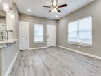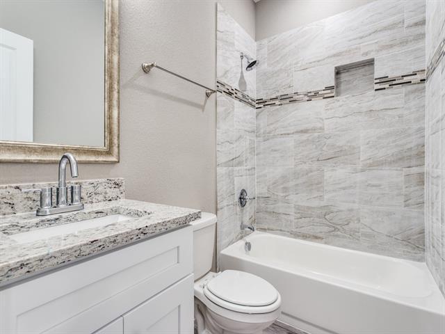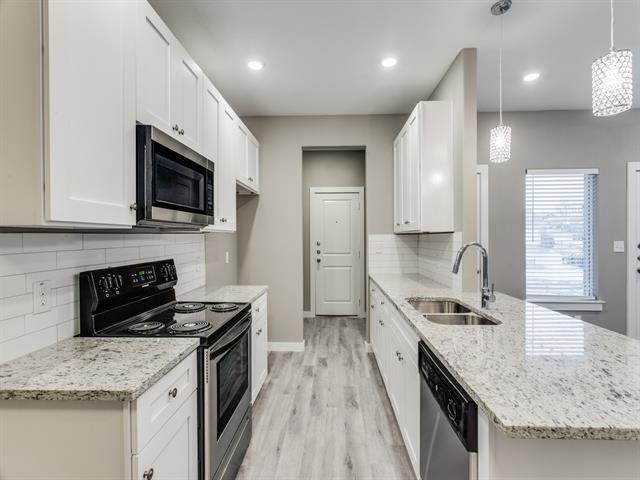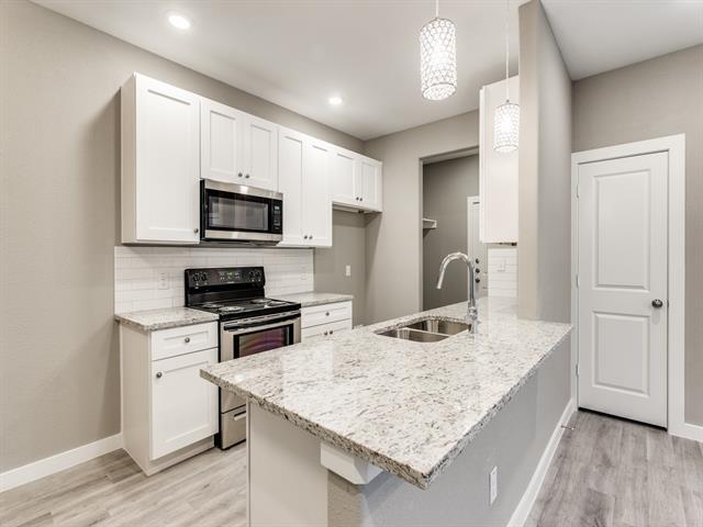 Beautiful house for rent in Fort Worth. 1114 Sq Ft, Featuring 3 Bedrooms, 2 Baths. Open floor plan. Kitchen features granite counters and white cabinetry. Backsplash, stainless appliances, recessed lights and a pantry. Fabulous master bedroom and master bathroom with granite counters and walk in shower with glass doors. Two additional bedrooms are great size with a shared modern bathroom. Luxury vinyl plank in the living, kitchen and bathrooms. Carpet in the bedrooms. 9 foot ceilings throughout. Fenced backyard. Separate utility room. 1 car garage. Pets welcome !!! Don't miss the opportunity to rent this home! *Pictures are of a similar property. Same floorplan and finish out. Color schemes may vary.*