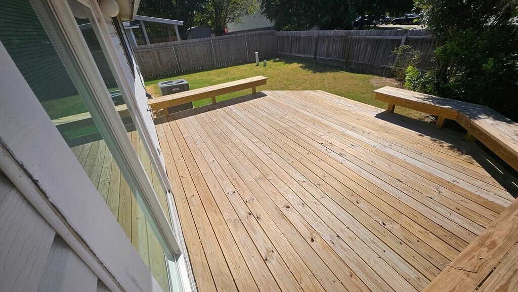 SPACIOUS CORNER LOT! Great starter 3 bed, 2 bath home! Well cared for single-story home in great condition with private, fenced back yard and large entertaining deck. 5 minute walk to beautiful Meadow Lake, fishing, playground and park. This inviting property offers a perfect blend of comfort and convenience, ideally located near an array of fantastic restaurants, a department store, and the St. David's Round Rock Medical Center, just a 12-minute drive away. Enjoy leisurely strolls to the nearby Meadow Lake Park, a wonderful spot for outdoor activities. This property features spacious bedrooms and bathrooms, providing ample space for your needs. The home is equipped with central heating and cooling, ensuring you stay comfortable year-round. Additional amenities include air conditioning and a ceiling fan for those warm Texas days and a washer/dryer. Please note that rent does not include utilities such as electricity, gas, water, or cable, giving you flexibility in choosing your providers. Don’t miss out on this opportunity! Contact us today to schedule a viewing and make it your new home!