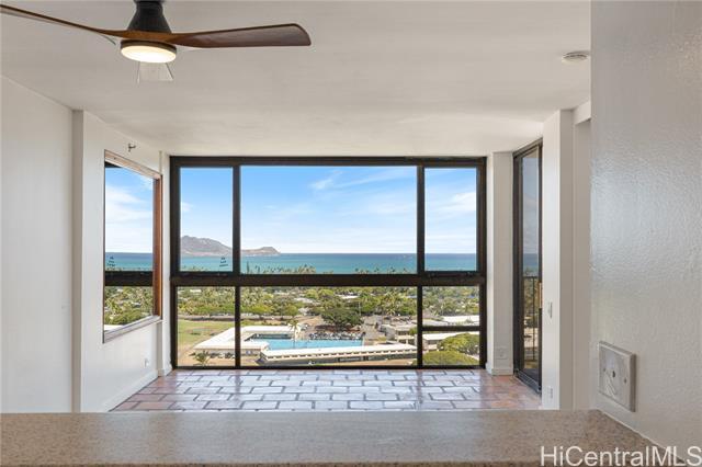 Stunning, panoramic ocean views like no other from this very private, 17th floor, corner end unit in the tallest building in Kailua! Completely renovated by an interior designer in 2022, this 2 bedroom 2 bathroom unit (converted from 3 bedrooms) features luxury vinyl flooring, brand new appliances, renovated kitchen and bathrooms, AC in every room, peaceful lanai and is fully furnished and fully stocked- linens, kitchenware & cookware too! Just bring your suitcase. Walk-in closet and laundry room offer plenty of additional storage. Incredible location, so close to all that Kailua has to offer. Walk or bike to all the restaurants, shops, yoga, fitness classes or to white, sandy Kailua Beach! Windward Passage offers the best amenities in Kailua- A heated saltwater pool and spa, sauna, gas BBQs, coral reef park with picnic tables, racquetball, pickleball & tennis courts, fitness center with sauna and showers, surfboard & bike storage, community room and 24/7 security! Windward Passage offers the most amenities of any east side community. Monthly rent includes water, sewer, cable & internet. Electric is at the tenant's expense. 1 year renewable lease. No pets. No smoking of any kind. Available 2/6/26.