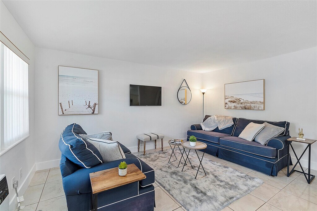 What a wonderful Location,you dont even need a car! The Pompano Circuit is free and will pick you up right at your door. This condo comes with 1 assigned parking spot. Complex is lovely and well maintained,small boutique style. Hoe is on the first floor,coin laundry is on site. The large 1 bedroom condo has been updated within the last 2 years,freshly painted and newer furniture with very comfortable king sized bed. Broyhill couches. Large couch pulls out to a Queen size sleeper. Beach buggy and chairs,beach towels . Fully functioning kitchen. Clean and comfortable! MLS ID F10498008