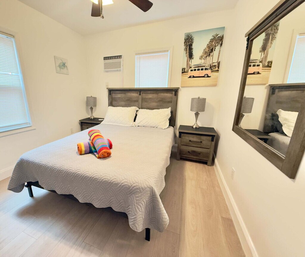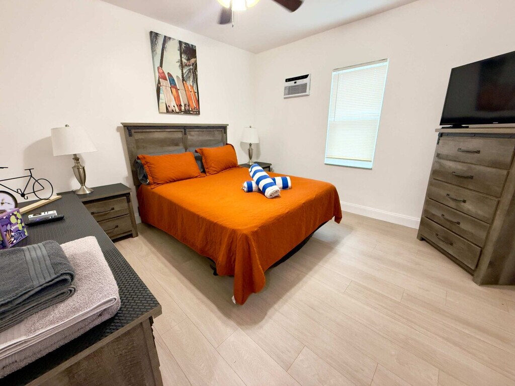 Welcome to The Pink Wave! Feel at home in this cozy 1-bedroom apartment, your beach getaway just steps from the sand. This apartment features a fully equipped kitchen, perfect for longer stays or home-cooked meals. Beach essentials are provided, including towels, chairs, and an umbrella. Guests have the option to enhance their stay with additional daily cleaning services available for an extra fee. The Wave House boasts a prime location just steps from Hollywood Beach, surrounded by some of the best attractions and dining options in Hollywood, Florida. Enjoy easy access to Hollywood Beach and Hollywood North Beach Park, perfect for sunbathing, swimming, or taking a scenic walk along the famous Broadwalk. Shopping lovers can visit Aventura Mall or Las Olas Boulevard, both just a short drive away, while entertainment seekers will appreciate the proximity to Gulfstream Park Racing & Casino and Hard Rock Stadium. Hollywood Beach is only a 1-minute walk, North Broadwalk a 5-minute stroll, North Lake a 9-minute walk, Hollywood Beach Theatre a 16-minute walk, and The ArtsPark at Young Circle a 4-minute drive. Sardelli Italian Steakhouse is a 1-minute walk, Billy’s Stone Crab a 10-minute walk, Taco Beach Shack a 10-minute walk, Istanbul Restaurant a 12-minute walk, Sapore Di Mare a 12-minute walk, and GG’s Waterfront a 15-minute walk. Hollywood Train Station is a brief 7-minute drive, Miami International Airport (MIA) is approximately a 33-minute drive, and Fort Lauderdale Airport (FLL) is only a short 13-minute drive away. Until November 13, the street will be closed for construction. The property remains easily accessible, and guests can park on surrounding streets. Quiet hours are between 10:00 PM and 8:00 AM. Lost or damaged linens and towels may incur a replacement fee at the end of your stay. Basic supplies — including personal care items, toilet paper, paper towels, dish soap, and trash bags — are provided at check-in, though restocking during your stay is not guaranteed. Should any beach chairs and umbrellas become damaged, replacements can be arranged upon request. [SI]