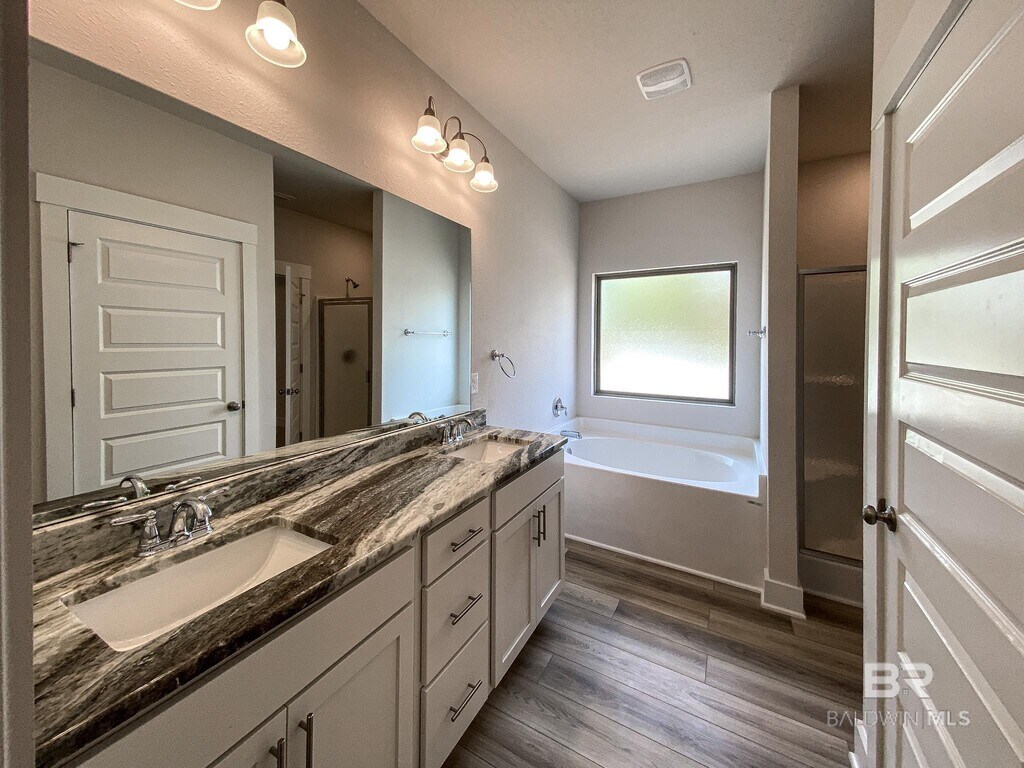 Gorgeous 4BD/2BA corner lot rental located in Gulf Shores! This home features an open floor plan with neutral tones. Beautiful luxury vinyl plank flooring throughout the spacious main entry, living and dining area. The kitchen features granite countertops, stainless steel appliances, white cabinetry, and an oversized island. The spacious master suite comes complete with double vanities, a stand-up shower, and large soaking tub. The three guest bedrooms, all a generous size, are located at the front of the home, along with the guest bathroom and full-size laundry-with washer & dryer hookups. This home also features a two-car garage. Outside you'll find a patio area and large unfenced backyard . This brand-new home is located in the Stonehaven Subdivision . The location is convenient to the white sand beaches, shopping, dining, and everything Gulf Shores has to offer. Tenant responsible for all utilities. Property will be held off market up to 14 days with Property Holding Fee upon approved application. Lease Prep Fee of $75 is due prior to move in. Approved pets require $400 pet fee per pet. Renters insurance is required.