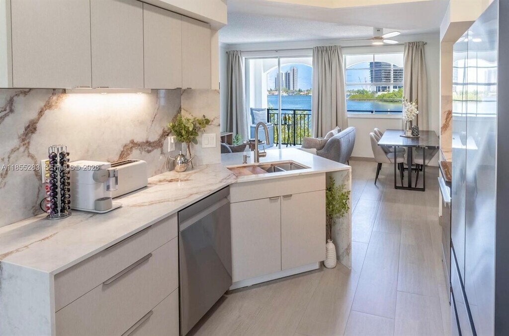 Welcome to this stunning, peaceful bayfront home with breathtaking water views from every front-facing room. Newly renovated, this immaculate 3 -bedroom, 2-bath condo is exquisitely furnished with designer pieces and features two private balconies—perfect for morning coffee as the sun rises over the bay or an evening glass of wine at sunset. The large, modern kitchen is fully equipped for culinary adventures, including an induction range, dual-flex refrigerator, and both Nespresso and Keurig machines. Situated on the first floor, the unit offers effortless access and clear water views from each principal room. Located in a gated community with resort-style amenities: two sparkling pools, a waterside clubhouse, fitness center, yoga studio, two tennis courts, and a spacious BBQ area. Prime location near top restaurants, shops, schools and Aventura Mall. Parking right at the front door. Move-in ready and pristine. Schedule your showing today. MLS # A11976024