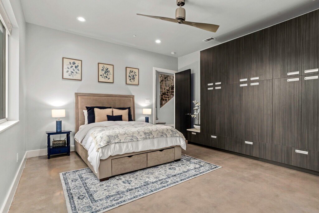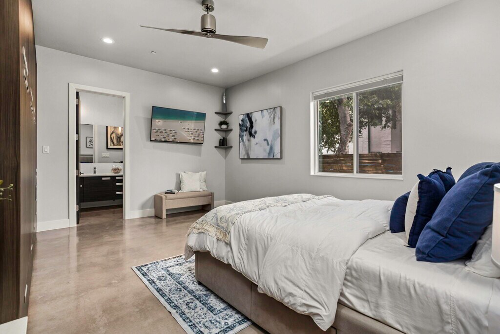 Experience elevated city living in this beautifully designed gated 2-story townhome in the heart of Southtown, just moments from the River Walk and surrounded by the neighborhood's most popular dining and nightlife. This home seamlessly blends modern style with everyday comfort, featuring an airy open-concept layout, a flexible bonus space ideal for a home office or gym, and a luxurious main-level primary suite complete with a custom closet and spa-like walk-in shower. The kitchen is a standout centerpiece with sleek quartz countertops, black stainless steel appliances, custom cabinetry, and an oversized island with smart dual-sided storage-perfect for entertaining or daily living. Sunlight pours in through expansive windows, highlighting the clean, contemporary feel enhanced by a no-carpet interior. Upstairs, two spacious bedrooms and a full bath provide privacy and versatility for guests or additional living space. Step outside to unwind on your covered terrace or enjoy the beautifully xeriscaped yards designed for effortless maintenance. With a rare 2-car garage, additional driveway parking, energy-saving solar panels, and a newer 2017 build, this home delivers both convenience and sophistication in one of the city's most sought-after locations. Call/text/ email Madison Peterson Leasing Specialist Exquisite Property Services