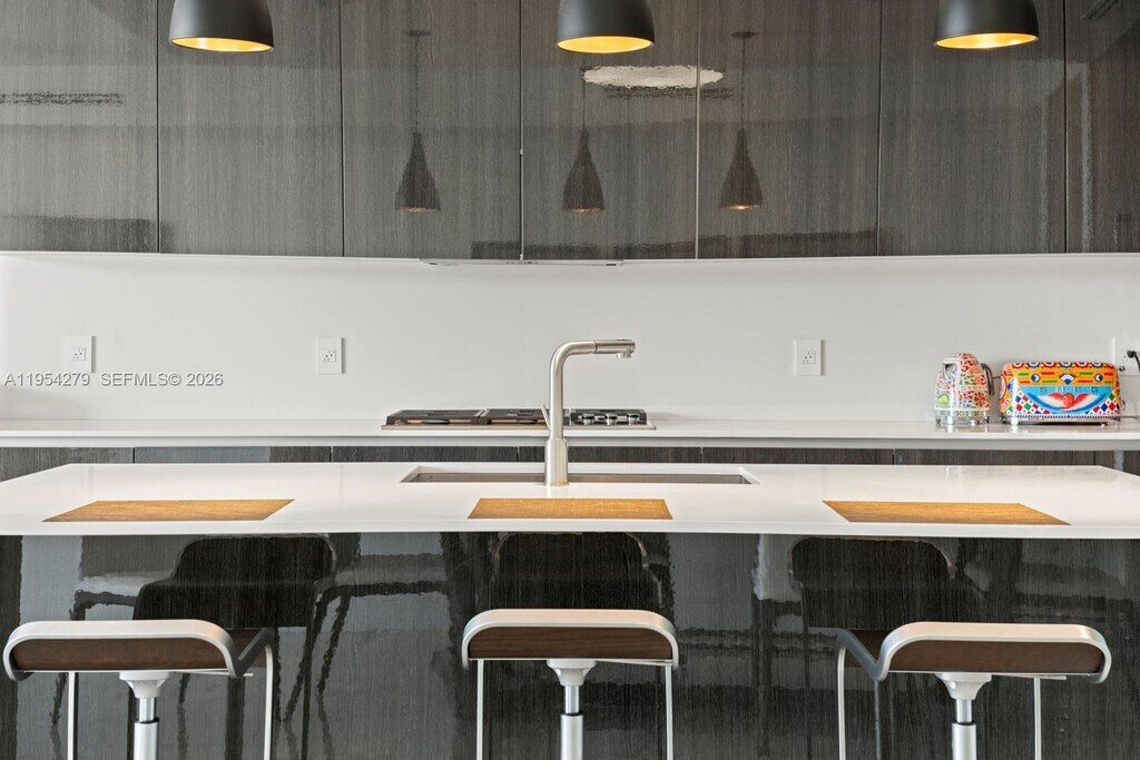 Courtesy of London Foster Realty Posted by Andrew Coleman with EXP Realty . Beautiful direct bay view, larger model furnished 3 bedroom plus maid's quarters. Spacious balcony with grill.This spectacular, furnished, and decorated 3BD/4.5BA unit is one of the best lines at Echo Aventura. Residence has a private elevator and foyer, high ceilings, a bright and spacious layout, smart home technology with in-ceiling audio, an oversized balcony with a summer kitchen and BBQ, a gourmet kitchen with Subzero appliances and a Wolf GAS range. The master suite includes a midnight kitchen, an oversized master bath with a soaking tub, and a large walk-in closet.