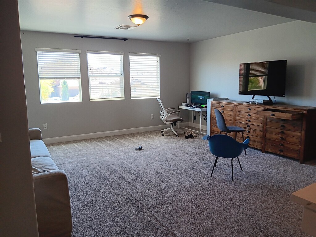 Marvel at the breathtaking beauty of this spacious 4 bedroom, large office that can be used as a bedroom, 3.5-bathroom house located at 3304 East 3050 South Street, St. George, UT 84790. With a generous size of 3500 sq ft, this property offers ample space for you and your family to spread out and relax. This home boasts a modern design with sleek finishes and plenty of natural light streaming through the large windows. The open concept living, kitchen, dining area is perfect for entertaining guests or simply enjoying a quiet evening at home. The first floor master bedroom features a large luxurious en-suite bathroom and huge walk-in closet, providing a private retreat for you to unwind. The well-appointed kitchen with a large island has stainless steel appliances. There is a second large living space on the second floor for gaming or gathering. Outside, the beautifully landscaped yard offers a peaceful oasis for outdoor gatherings and relaxation. This home with a three car attached garage is situated in a desirable neighborhood, this property is conveniently located near schools, shopping, and dining options. Don't miss the opportunity to make this stunning house your new home sweet home. This home is not in an HOA. This home will allow a small/medium dog with extra $50.00/pet for pet rent per month. Pet Security Deposit will increase by $300.00 per animal after approval of animal(s) and is refundable if lease terms are met. Application fee is $65.00 per adult Move in requirements are: utilities transferred to tenants name (paperwork required at or before move-in), security deposit/holding deposit is paid in full, renters insurance with 300,000 tenant liability coverage with Robert M. Hackard, Jr. Revocable Trust listed as additionally insured. Pet Details: Small to medium dogs upon approval