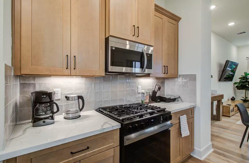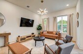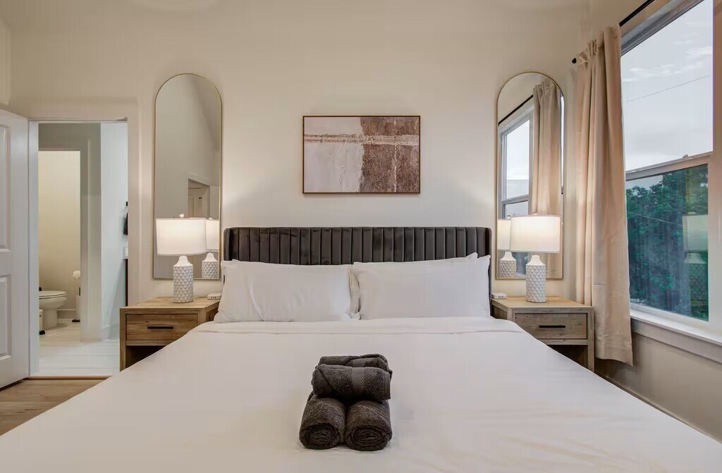 Welcome to your home away from home in this chic, stylish, three-story townhome in Southeast Houston. This hidden gem is centrally located in the Inner Loop, just minutes from Houston’s prime attractions. This home features a fully equipped, modern kitchen with stainless steel appliances and a functional kitchen island with stool seating. The dining room offers a restaurant-like environment with a dinner table and seating for 8+. The open-concept living room is designed for easy socializing with comfortable couches and sofas, a wall-mounted HDTV, and high-speed Wi-Fi. A laundry room with a washer and dryer is available for your use, and a small backyard is also available for your enjoyment. Free parking is available in the garage. House-trained pets are welcome with a non-refundable pet fee of $150 per pet, with a maximum of 2 pets up to 25lb per stay. An additional nightly rate will be applied for more than six guests. Houston is known for its tasty Tex-Mex and contributions to space and science. Nearby attractions include The Houston Museum of Natural Science, Houston Zoo, and Minute Maid Park. Exciting neighborhoods such as Midtown, Washington Avenue, and Montrose offer great restaurants and lively bars. Smoking of any type is not allowed, and violations are subject to a $450 fine plus the cost to clean, deodorize, and repair damages. Check-in is at 4pm and check-out is at 10am. Only registered guests are allowed on the property. A noise alert device is installed to comply with local noise ordinances and prevent unauthorized parties; this device does not record or store sound data. Full disclosure of the number of people on the property at any time is required, with security camera verification to comply with local laws. Registration Number: STR-2025-000711 [SI]