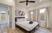 This modern three-story furnished home,featuring three bedrooms and three and a half bathrooms,is located on Daphne at Peerless Park,just minutes from the Medical Center at OST. The stunning exteriors showcase an open-concept floor plan with luxury vinyl plank flooring. The modern interior features an open kitchen with Quartz countertops,a Zellige mosaic tile backsplash,shaker cabinets,and stainless-steel appliances. The primary bedroom is bright and includes a spa-like ensuite with a walk-in shower and tub combo,plus a spacious walk-in closet. Each of the secondary bedrooms includes ensuite bathroom and generously sized closets. Additional features of these homes include a second-story balcony,bonus flex space,private driveways,and backyards. Just under a mile from the 52-acre Hines Development,Levit Green features dining,shopping,and outdoor spaces,and is also less than two miles from the TMC3 mixed-use medical center. MLS# 24855963