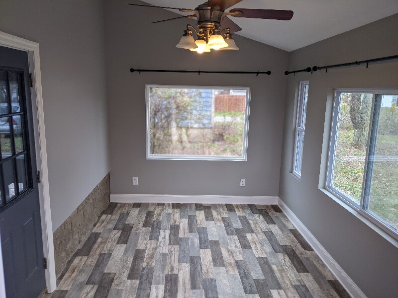 Newly remodeled 2 bedroom ranch house. Ceiling fans throughout along with, luxury vinyl plank flooring in the living and kitchen , granite countertops with tile backsplash, stove, dishwasher, fridge, microwave and a sun room. Central air!!! Complimentary washer and dryer! credit and background check required No pets No smoking