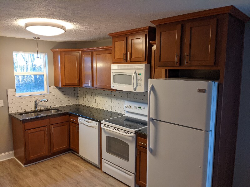 Property Id: 763817 Newly remodeled 2 bedroom ranch house. Ceiling fans throughout along with, luxury vinyl plank flooring in the living and kitchen , granite countertops with tile backsplash, stove, dishwasher, fridge, microwave and a sun room. Central air!!! Complimentary washer and dryer! No evictions Credit and background check required No pets No smoking