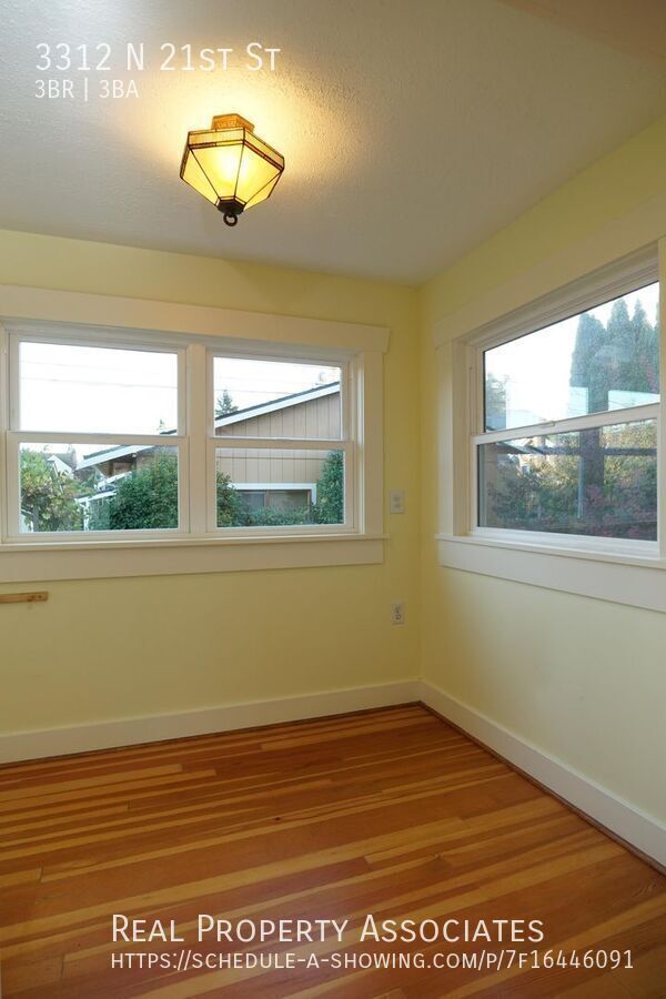 - Video tour link: - Schedule an in person tour link: - For questions please call or text: - Professionally Managed by Real Property Associates - Beautiful hardwood floors throughout the home - Large kitchen with lots of natural light plus extra storage - Modern stainless steel appliances including a gas stove - Includes spacious breakfast nook and a separate large dining room - Cozy living room space with a modern gas fireplace - Master bedroom suite featuring a private balcony - Large bedrooms with spacious closets and big windows - Enormous basement space with a full size washer and dryer plus a utility sink - Detached two car garage plus extra off-street driveway parking - Moments away from Downtown Tacoma, with easy access to freeways - Walk to coffee shops, restaurants, shopping, express bus lines and parks - Landscaping is required and separate from the rent - Water / sewer / garbage / gas / electricity are separate from rent - $45 application fee per adult - Refundable security deposit is one month's of rent - Pet/Animal screening profile required as part of the application process ($30 each application) - Refundable pet deposit amount is 25% of one month's rent - $35 monthly pet rent per animal - Renter's legal liability insurance is required and part of the Benefits Package ($30 monthly). If qualifying legal liability insurance is purchased and provided by tenant to RPA, the benefit package can be reduced to $15 monthly for reduced benefits or waived upon request. - See additional listings at: Detached Two Car Garage Full Sized Washer And Dryer Gas Fireplace Gas Stove Hardwood Floors Throughout Laundry Room W/Utility Sink Private Garden/Patio