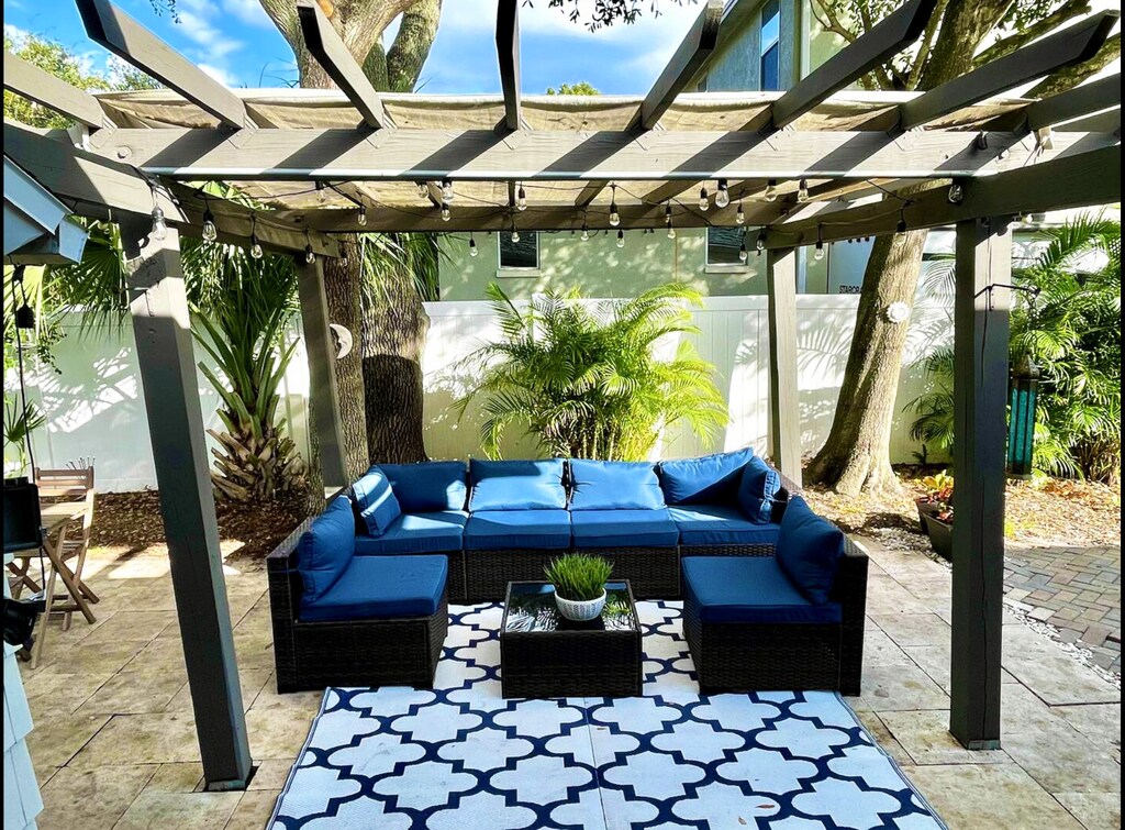 Furnished or unfurnished home available. Pets welcome! A must-see in person. Close to bay and beaches. With a perfect location less than 1/2 mile to the main walking path of Bayshore Boulevard, under 10 minutes to downtown, and on a direct line to the beaches of the Gulf, welcome home to this charming and spacious 3-bedroom, 2-bathroom property in the most desirable neighborhood in the city: South Tampa just steps from Bayshore Beautiful. On an oversized corner lot, this house features original hardwood flooring, an updated kitchen, a spacious living room, and an abundance of natural light. The ample en suite bedroom adjoins a separate living area, which could serve as an office, family room, or home gym. The two secondary bedrooms are nicely appointed and share a Jack and Jill bathroom with large and updated walk-in shower. Outside, the large fully-fenced in back garden is both charming and perfect for entertaining under the lit pergola!