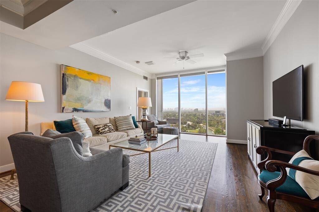 Experience elevated high-rise living at Royalton Condos along Allen Parkway,just steps from Buffalo Bayou Park and its scenic trails. This 13th-floor,west-facing residence offers 2 bedrooms,2.5 baths,and 1,749 SF of light-filled living space with stunning sunset views. The open-concept layout features expansive windows,hardwood floors throughout,and a well-appointed kitchen with granite countertops—ideal for everyday living and entertaining. The spacious primary suite provides a private retreat,while a secondary bedroom and rare half-bath add flexibility and convenience. Enjoy full-service amenities including 24-hour concierge,valet,resort-style pool and spa,fitness center,resident lounge,and more! All minutes from Downtown,River Oaks,and the Medical Center. MLS# 11059239