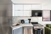 Feel at home in this comfortable and convenient 1-bedroom apartment, centrally located in the Gramercy Park area. This fully furnished and equipped apartment features stylish and modern decor. The kitchen is fully equipped with all the necessary appliances such as a refrigerator, oven, stove, microwave, coffee maker, and toaster, as well as utensils, dishes and cookware. Fresh towels are provided in the bathroom. A washer and dryer are also provided. The apartment also features air conditioning and heating, a 50" flat screen TV, free Wi-Fi, and an iron and ironing board and hair dryer. Pets are allowed only with approval. Located on East 22th St, this apartment is in a vibrant and safe neighborhood known for its tree-lined streets, historic architecture, and beautiful parks. Gramercy Park is a short walk away. The location is also nearby many popular restaurants, bars, cafes and shops that offer a wide range of dining and shopping options. Additionally, it's also a short walk from several subway lines, making it easy to get around the city for business meetings or events. The location is also a great starting point for exploring other parts of the city, with quick access to popular tourist destinations like Times Square and the Empire State Building. New York City's heating season is until the end of May. Beginning around mid-April, window air conditioning will be installed. [SI]