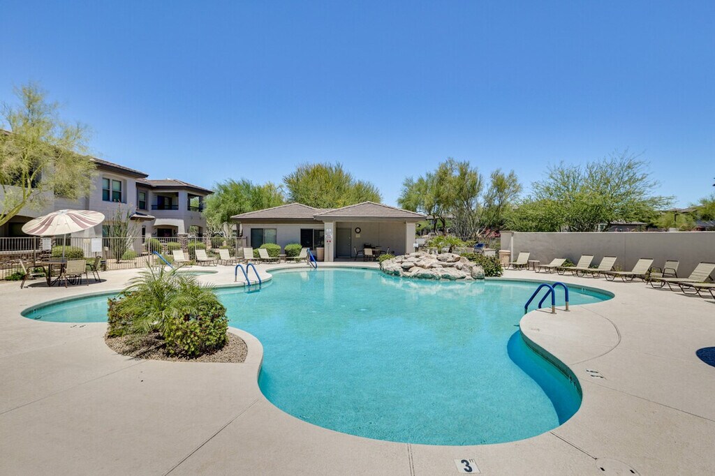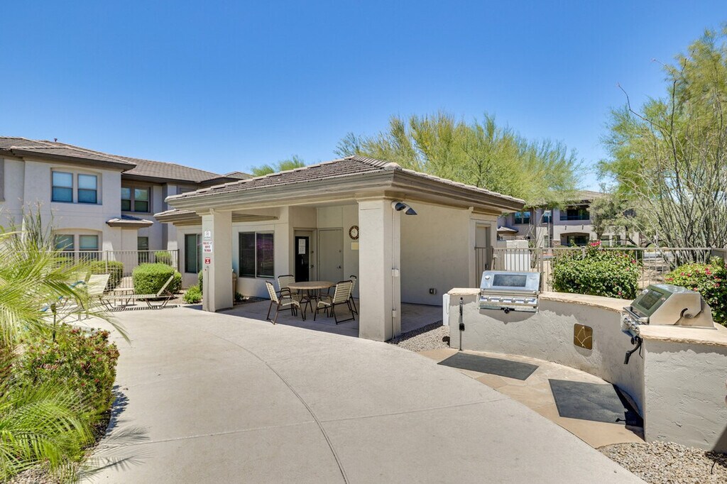 The advertised rate of $3,957/month is the lowest available price, based on a 30 day(s) stay with a move-in date of July 30, 2026. Rates vary depending on the duration of stay, season, and other parameters. For exact pricing and additional pricing components, please visit our website and enter your desired move-in and move-out dates. The rate is applicable when billed upfront; it can be higher if billed in multiple payments. Feel at home in this golf-side Cave Creek vacation rental in the Villagio at Dove Valley Ranch gated community. This single-story, 2-bedroom, 2-bath condo is located on the second floor and requires an exterior staircase to enter. Start your days with desert skies and end them with sunset views over the 18th fairway. This condo is designed for extended stays and features 2 smart TVs, an en-suite bathroom and walk-in closet in bedroom 1, and a balcony. The kitchen is equipped with a refrigerator, stove/oven, dishwasher, Keurig, blender, microwave, cooking basics, dishware and flatware, trash bags and paper towels, a dining table, and spices. Additional amenities include free Wi-Fi, central air conditioning and heating, ceiling fans, a washer, dryer, iron and board, hangers, linens and towels, body wash, and a hair dryer. Guests have access to the outdoor heated pool which is open year-round, a hot tub, and 2 gas grills. One garage parking spot is available for one vehicle. Free street parking is available on a first-come, first-served basis. The driveway is not available for guest use. RV/trailer parking is not permitted. With a front-row seat to Sonoran serenity, this condo is near the Dove Valley Ranch Golf Club. Cool off in the community pool and toast the evening at a downtown saloon. Tee boxes, trails, and tranquility await! No smoking, pets, events, parties, or large gatherings are allowed. Additional fees and taxes may apply. A photo ID may be required upon check-in. Includes a workspace in bedroom 2. [SI]