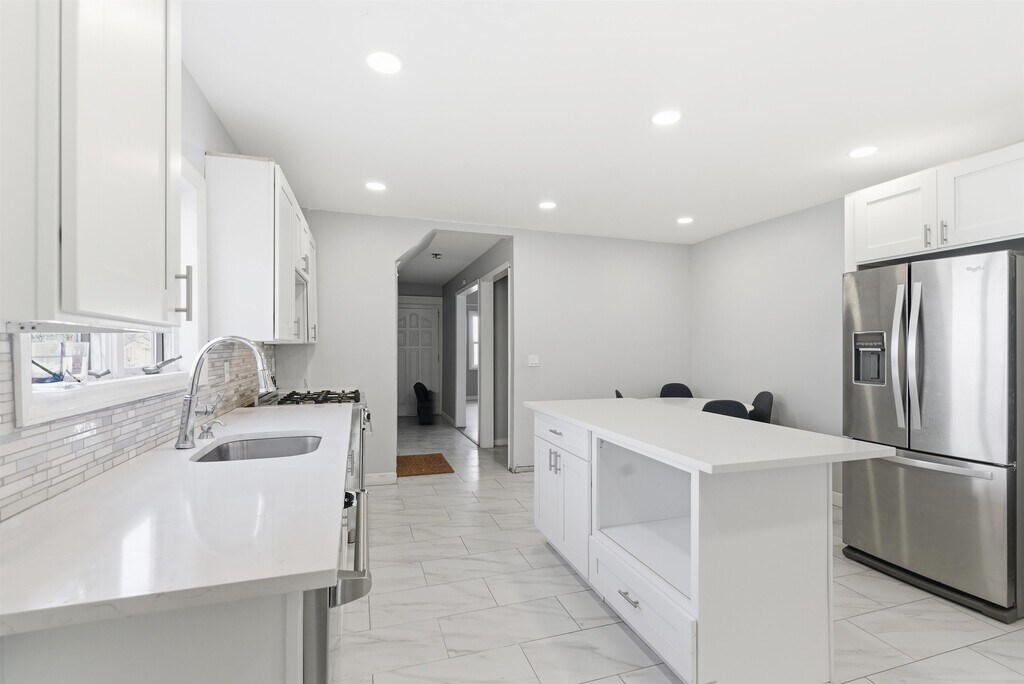 FRANTZ DUMELNow available for rent in West Englewood! This newly renovated 5-bedroom, 2-bath duplex apartment is ideal for large families and professionals seeking space, comfort, and convenience. The main level features a beautiful eat-in kitchen with a center island, abundant cabinetry, stainless steel appliances, including a high-end Vissani range, and an elegant interlocking glass-and-metal tile backsplash. This level also offers a spacious primary bedroom, two additional cozy bedrooms, and a fully renovated bathroom. The lower level includes two generously sized bedrooms and another renovated full bathroom, providing excellent separation of living space. Ideally located near Englewood Hospital, this home is perfect for medical professionals and healthcare staff. Enjoy close proximity to high-end retail stores, dining, and restaurants, with a bus stop to NYC conveniently located right at your doorstep. Additional highlights include a large backyard with an expansive deck, kitchen pantry, in-unit washer and dryer, and ample parking.