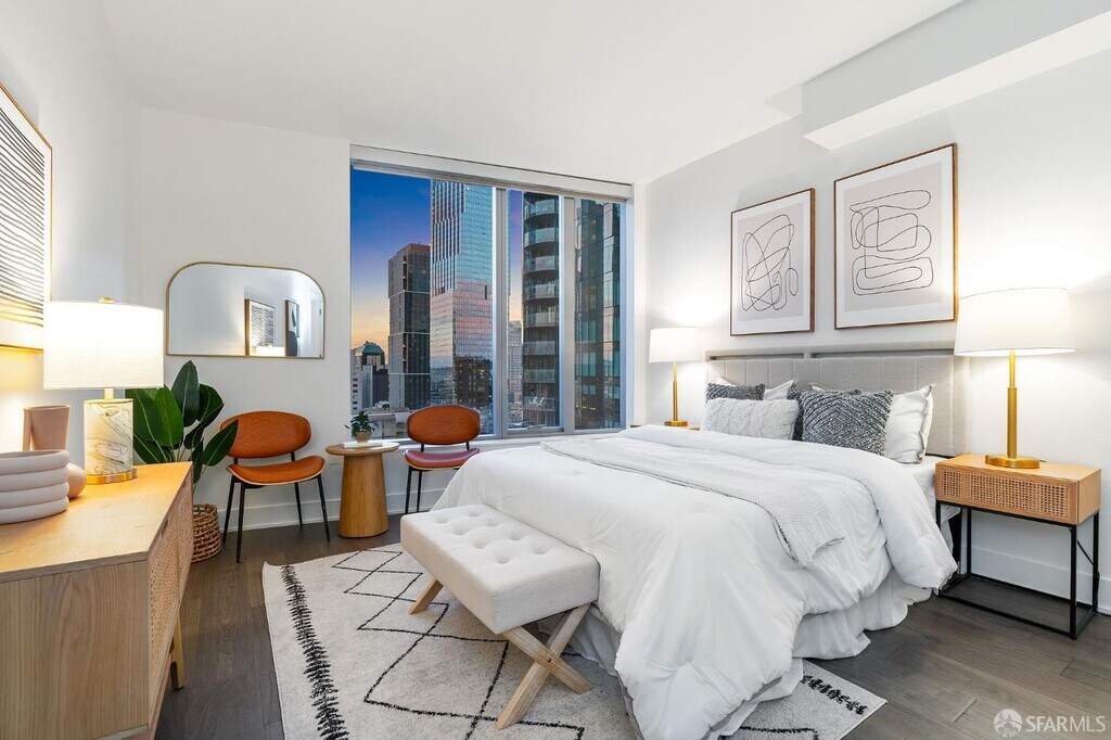Located on the 18th floor this 2BR with most desirable split floor plan boasts an amazing city views. Beautiful wood floors throughout unit, a high ceiling, kitchen is equipped with every chef's dream high-end Gaggenau appliances, ample closet space and more. Designed by Bernardo Fort-Brescia of Arquitectonica, LUMINA offers residents world-class amenities such as a full-length saline lap pool, a 7,000 sq. ft. state-of-the-art gym, landscaped outdoor spaces, rooftop, valet parking, 24-hour door service front desk service. On the ground floor of LUMINA, Woodlands Market offers organic and natural products from local suppliers, prepared foods, and a coffee bar. Just a short walk to Embarcadero, Oracle Park, and Ferry Building, as well as world-class restaurants, coffee shops, Farmers Market, and The Warriors stadium. MLS # 426115997