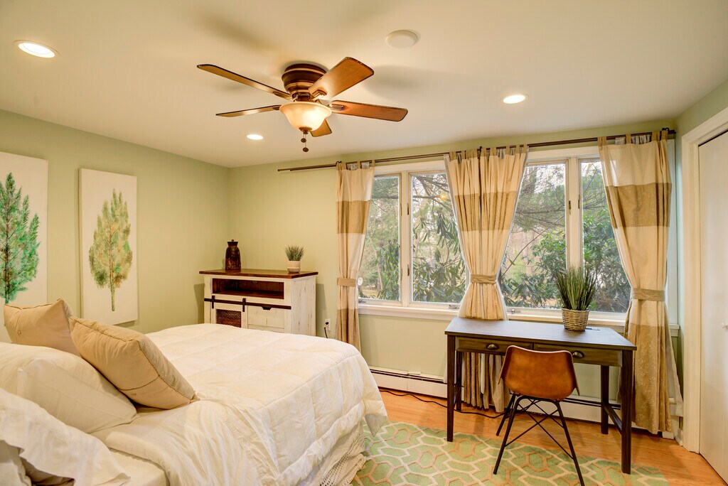 22 DE FEBRERO DE DISPONIBLES, 2023, A CORTO O A LARGO PLAZO MANTENTE OPORTUNIDAD! COMPLETAMENTE EQUIPADO Y AMUEBLADOS. A SOLO COLOCA TU EQUIPAJE. EL ALQUILER INCLUYE CUALQUIER LUGAR! SIN IMPUESTO ADICIONALES O TARIFAS DE LIMPIEZA. Bienvenido a tu propio, chalet amueblado en la cima de una colina y rodeado de la naturaleza y árboles añosos. Convenientemente ubicados cerca del centro de Princeton y de la Princeton University, este apartamento, con tu propia entrada privada, limita con una encantadora, contemporáneo casa moderna de mediados de siglo. La unidad es moderno con detalles rústicos y está maravillosamente & administrado amueblada y decorada y ofrece una gran cantidad de luz en todo. El nivel principal cuenta con un habitación de tamaño con piso laminado y armarios dobles y un baño completo con una cabina de ducha con azulejos y accesorios modernos. El segundo nivel cuenta con el gran salón rodeado de ventanas, un área de escritorio empotrado, y el área de comedor. La cocina abierta con desayunador se destaca por un tragaluz, más ventanas, iluminación empotrada, una buena cantidad de gabinetes y accesorios modernos. Disfruta de la paz y la serenidad esta propiedad tiene para ofrecer. Todo está disponible para tu día a día. (sábanas, toallas, utensilios, cafetera, horno de microondas, platos, etc.) Todos los servicios públicos están incluidos en el alquiler, además de televisión por cable y de Internet FIOS. El depósito de seguridad depende de la duración del contrato de arrendamiento. Las mascotas se consideran caso por caso.