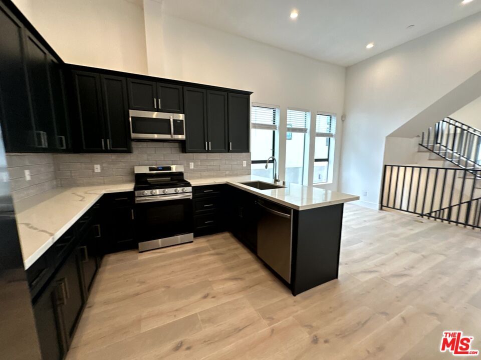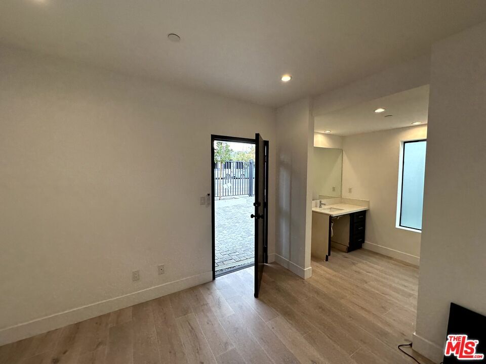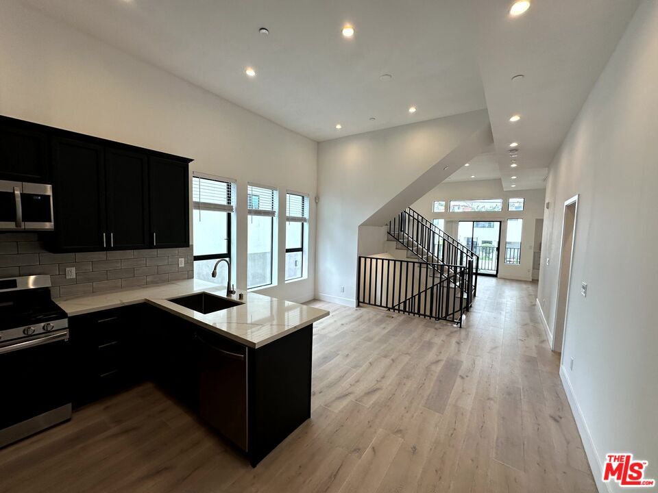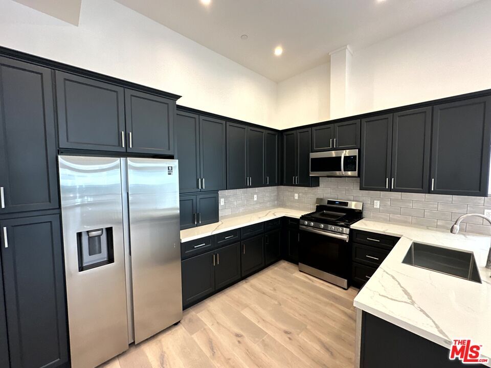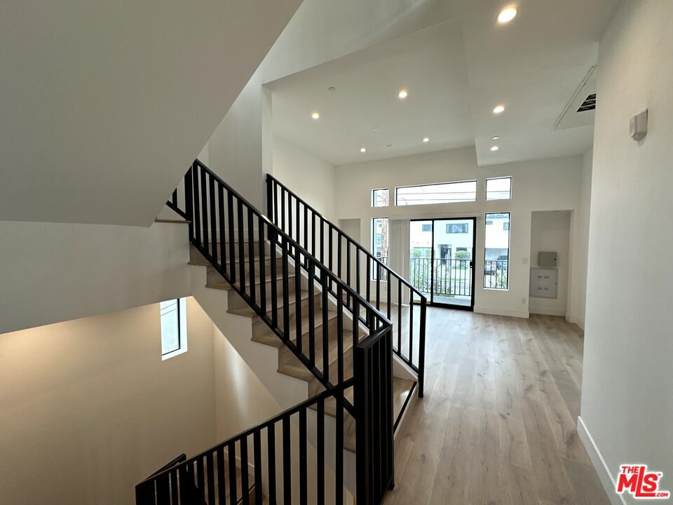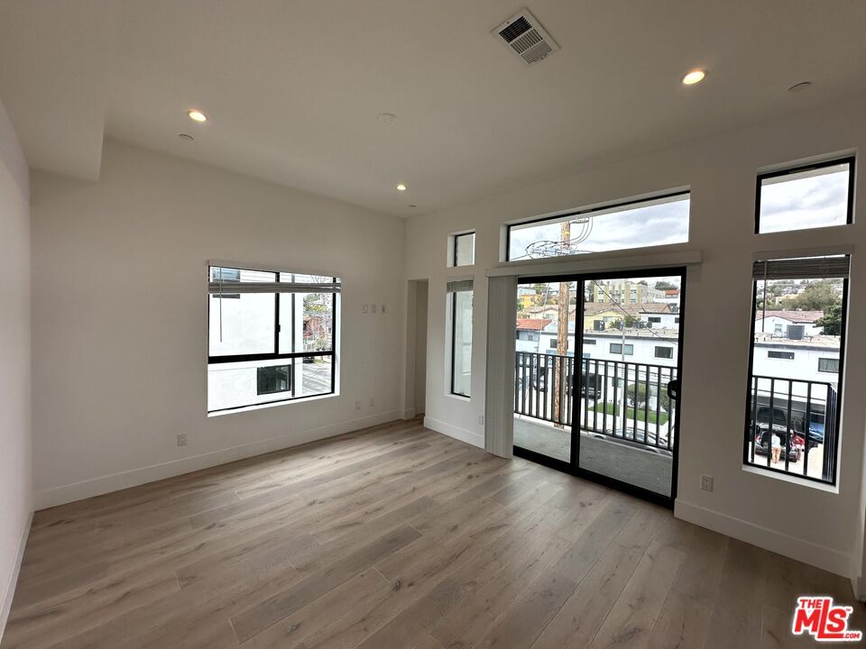 Beautiful Modern Luxury 4 Story Townhome - 3 bed - 4 bath with office/studio and Rooftop Deck in Silver Lake. Step into modern elegance with this 2021-built 4-story luxury townhome nestled in the heart of Silver Lake. This stunning triplex unit features 4 bedrooms, 4 bathrooms, and a spectacular rooftop deck, offering breathtaking views of the LA skyline and the Hollywood sign.The home welcomes you with a bright and spacious open floor plan, boasting high ceilings and luxury vinyl flooring. Each level is enhanced by recessed lighting and high-end finishes, creating an ambiance of sophisticated comfort. Balconies on each floor allow for seamless enjoyment of the vibrant city energy.The contemporary kitchen is a chef's dream with sleek cabinetry, pristine white quartz countertops, and stainless-steel appliances. The dining area adjoins a large living room, complete with a sliding glass door that opens to the first of several balconies. The second floor houses two well-appointed bedrooms, a shared bathroom, laundry convenience with a stackable washer and dryer, and yet another balcony for private outdoor enjoyment. Ascend to the private sanctuary of the top-floor master suite, featuring a walk-in closet, an en-suite bath, and an expansive private roof deck perfect for entertaining or peaceful relaxation.The ground floor offers versatility with an additional room and en-suite bath, featuring a private entrance that can serve as a home office or guest suite.Experience the luxury of double-pane picture windows throughout, framing iconic views and flooding the space with natural light. The unit comes with two assigned parking spaces in a gated parking.Located in the desirable Silverlake area, close to Rampart Village and Echo Park, and just a short distance from downtown. Enjoy easy access to shopping, dining, and entertainment, with the convenience of the 101 freeway just moments away. This is not just a home; it's a lifestyle for those who seek urban living with a touch of luxury. MLS# 25581829