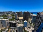 Furnished 27th floor corner unit with amazing Diamond Head and mountain views from this immaculate and furnished 2 bedroom, 2 bath unit at popular Windsor Waikiki. 1 parking. Great amenities include pool, jacuzzi, gym, a rooftop Sky Terrace. A short walk to beaches and convenient to Ala Moana Shopping Center, Ala Moana Beach Park and Waikiki beach, eateries and recreation. Rent includes water/sewer only. Tenant pays electric (unit is sub-metered), cable, internet and phone service. Security deposit is one month's rent. Long term ONLY. 1 year minimum. No subleasing. No pets. No smoking. No vaping. RENTER'S INSURANCE is required. Proof of coverage must be provided prior to move in. There is a non-refundable application fee. All adults who will be residing in the unit must submit an application.