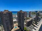 Price is $4350 for a 6 month lease. 2 Assigned parking stalls. (If you only have one car please call to discuss the extra parking space.) Fully furnished. Just bring your clothes. Storage area available to rent in the building as well. The apartment includes all appliances, dishwasher washer/dryer, double door refrigerator with ice-maker, oven built-in microwave, garbage disposal. Glorious ocean, sunset and sunrise view from this air-conditioned corner unit. Only 4 units per floor. Two master bedrooms on each side of the living room with built in Internet stations. One covered parking stall included in rent. Additional parking and storage is available from the building at a small fee. New window tinting just applied to all windows. 45th Floor roof allows for 360 degree parties with BBQ, Wet bars and tables. Tenant pays electric. (The electric has been under $100 for the previous tenants) The State of Hawaii General Excise Tax is included in the rent. Owner will consider 2 fixed cats or one small dog under 25bs. Amenities included: BBQ’s – (Sky Terrace, by Jacuzzi and Pool level) Full Gym and Weight Room FREE WiFi at Sky Terrace, Lobby and Pool Conference / Meeting Room Covered Lanai by Pool Pool Jacuzzi Sky Terrace on Roof Putting Green Jogging Path Recreation Area Recreation Room Book and Magazine Library Storage Lockers Security: 24hr Guard -Locked Lobby On-Site Resident Manager Secure Parking with Video Surveillance.