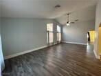 This four-bedroom home with a den provides ample interior and exterior space. The property includes a large lot suitable for recreational vehicle and boat parking, along with a fully insulated three-car garage. A paid-off solar panel system reduces monthly energy costs to approximately twenty dollars. The residence features an open floor plan, high vaulted ceilings, and spacious rooms. An outdoor entertainment area is also available. The application process is straightforward. Interested parties are encouraged to inquire about viewing the property. Dogs are welcome.