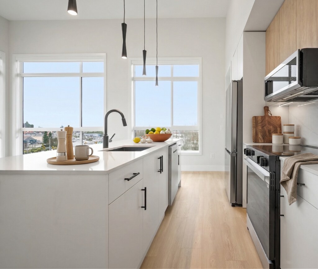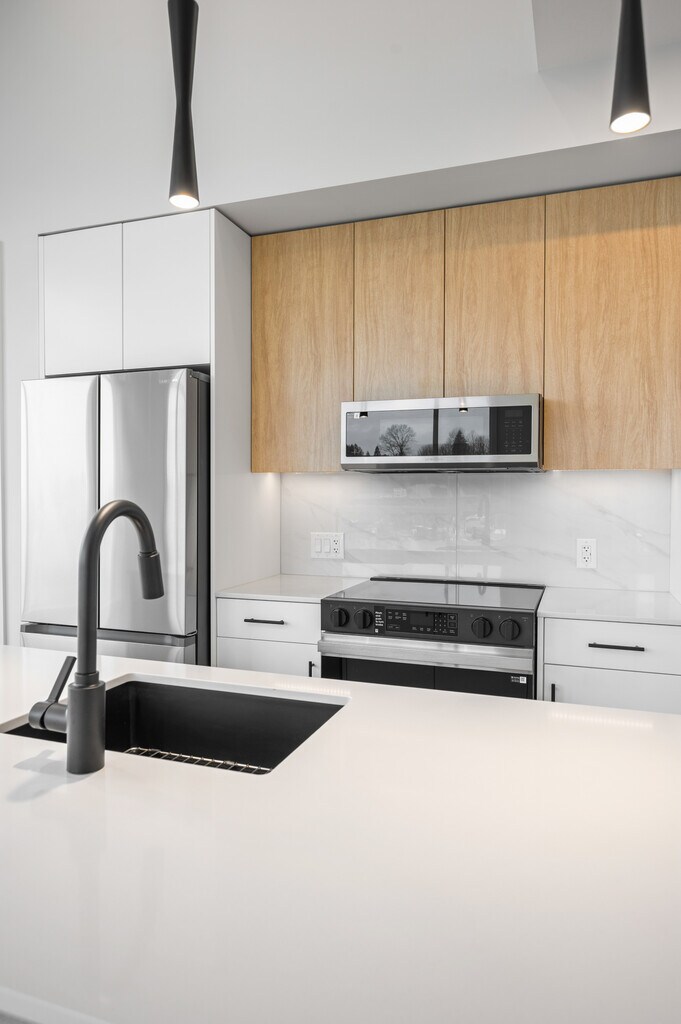 Renting a home at Sage offers a sense of pride. Inside the homes you'll be greeted with the type of quality that never compromises on the essentials—air conditioning, durable quartz countertops, and reliable Samsung appliances are all included to provide the comfort and functionality you're looking for. Starting at $2,050-$2,100 A light and modern Scandinavian inspired interior theme sets the stage for you to personalize, a canvas that's yours to shape. Every home has a foundation of design excellence, boasting 9' ceilings, durable laminate flooring, and open-concept layouts. • Open Concept living • Includes a 190 Sq ft Lumon retractable solarium enclosure, with a heater for year round living • Light modern Scandinavian design scheme • High performance Air Conditioning • Durable laminate flooring • 9' ceiling • Fresh white lower cabinets with complementary light oak laminate upper cabinets • Large marble vein polished porcelain tile backsplash • Durable quartz countertops • Matte black sink with spray faucet • In Suite Laundry • Reliable Samsung Appliances • Grand Lobby entrance with Key fob entry system for all buildings and parkade for security • Underground Parking and storage lockers • No smoking rentals